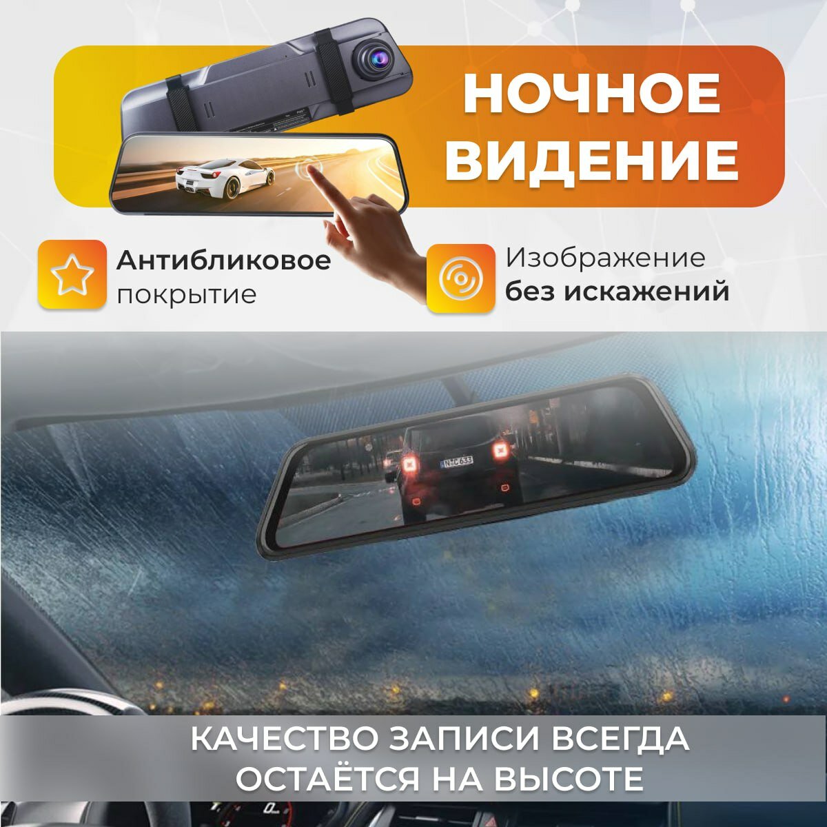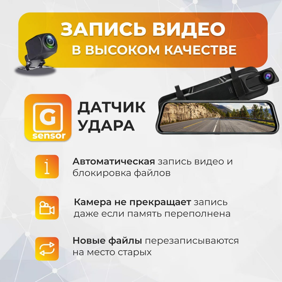 Автомобильный видеорегистратор "Full HD" с зеркалом заднего вида и двумя камерами / Сенсорный дисплей / G-сенсор