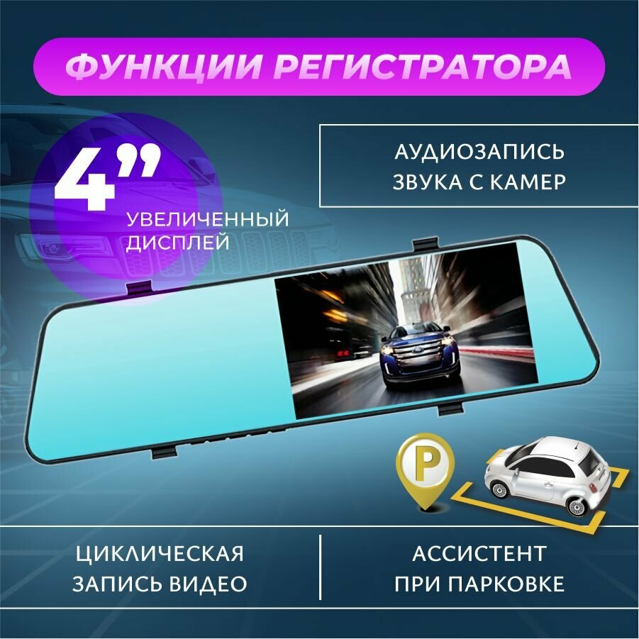 Отзывы на Видеорегистратор-зеркало заднего вида 30 см с двумя камерами, с камерой заднего вида