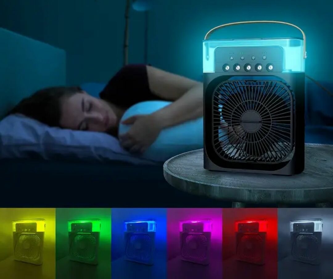 Портативный настольный вентилятор охладитель воздуха с подсветкой 7 цветов