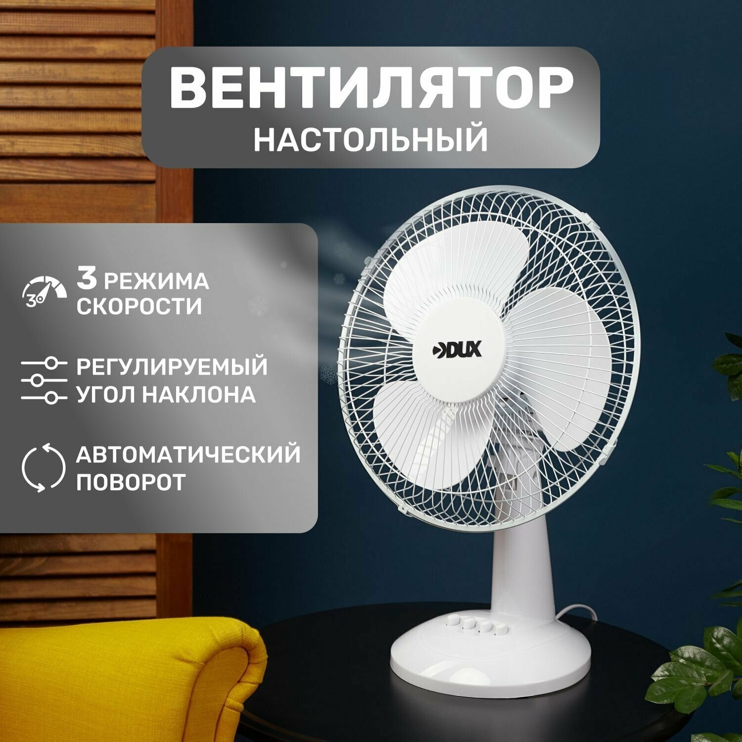 Вентилятор настольный DUX 35 Вт, диаметр решетки 27,5-28,0 см, винт 22,3 см