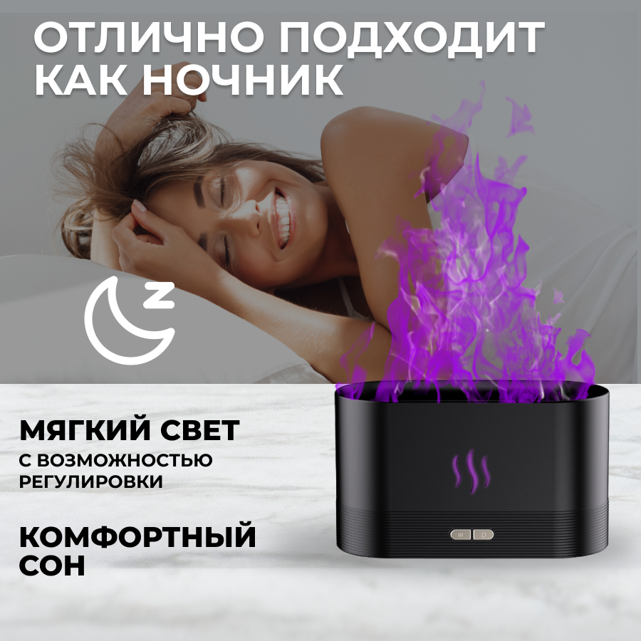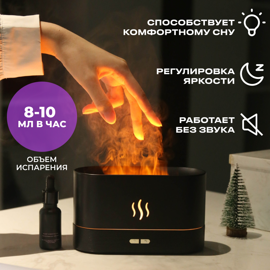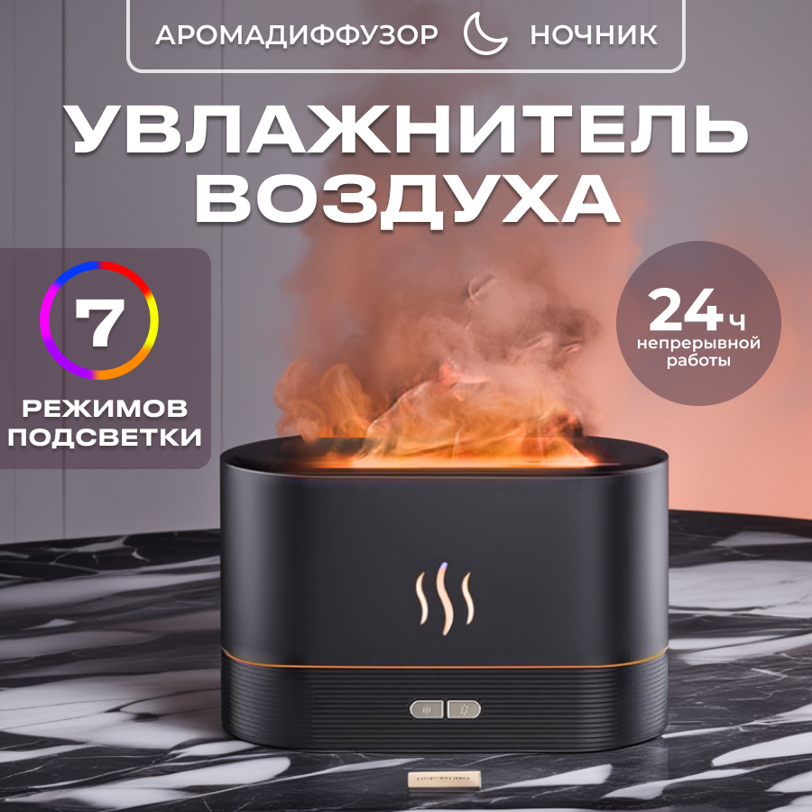 Увлажнитель воздуха и аромадиффузор с подсветкой для дома, ночник с эффектом пламяни