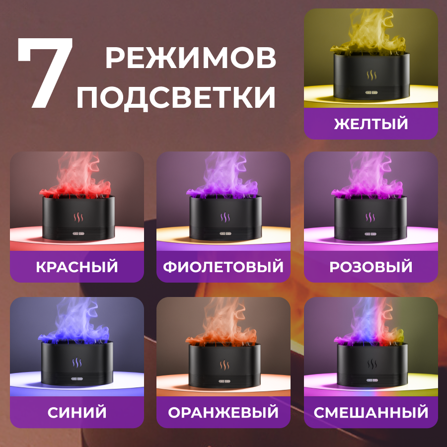 10 цен на Аромадиффузор пламя 7 цветов