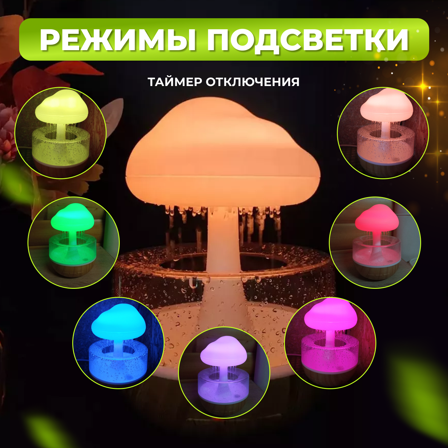 10 цен на Увлажнитель воздуха для дома с функцией ночника "Гриб"с подсветкой и эффектом дождя,диффузор,ароматизатор воздуха и аромоувлажнитель