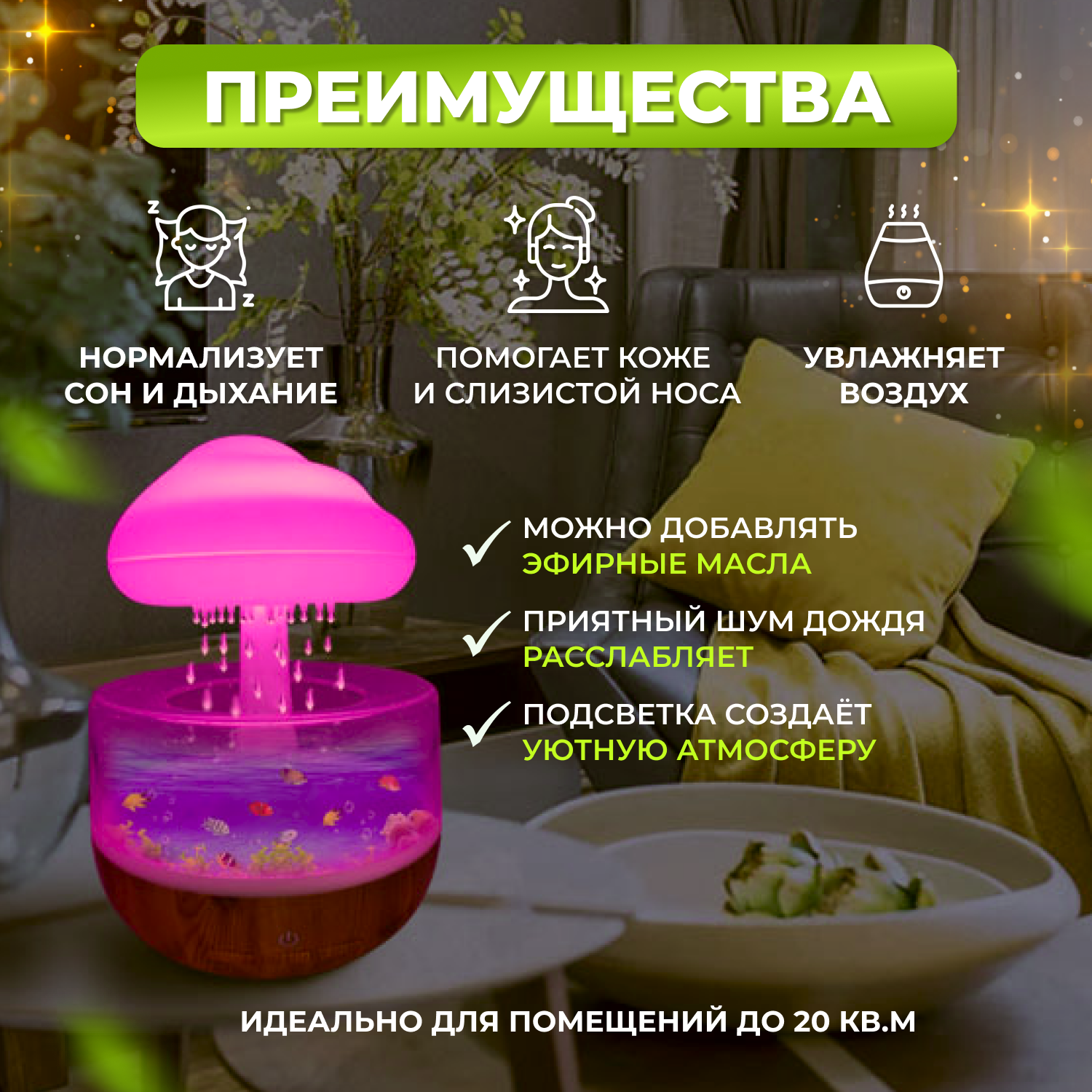 Увлажнитель воздуха для дома с функцией ночника "Гриб"с подсветкой и эффектом дождя,диффузор,ароматизатор воздуха и аромоувлажнитель информация: