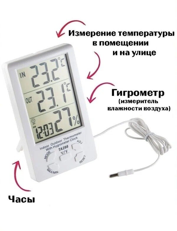 Отзывы на Метеостанция домашняя электронная, гигрометр термометр комнатный для измерения температуры и влажности воздуха с выносным датчиком