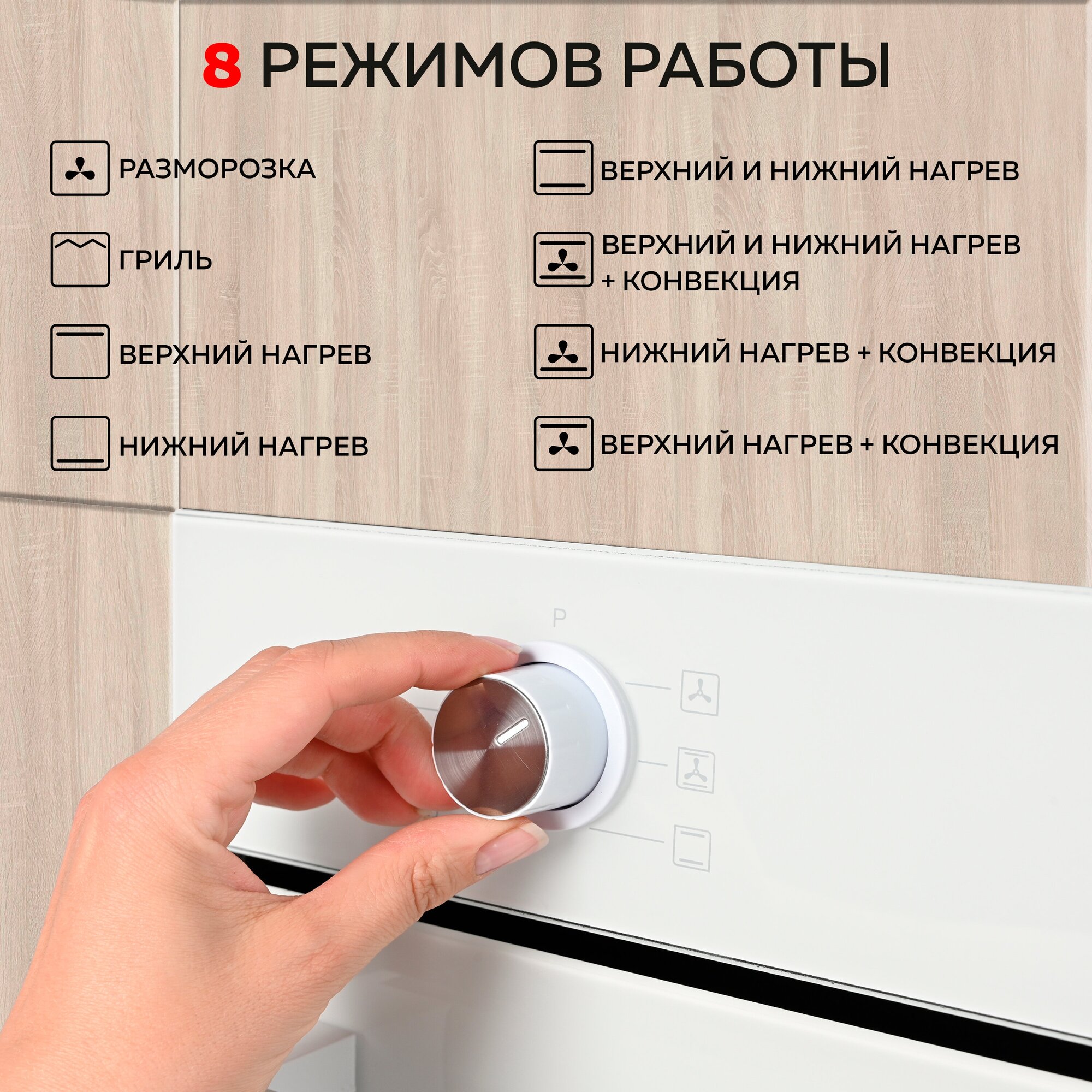 Духовой шкаф DEXP 1MMT-W , электрический, белый, 8 режимов, таймер, конвекция