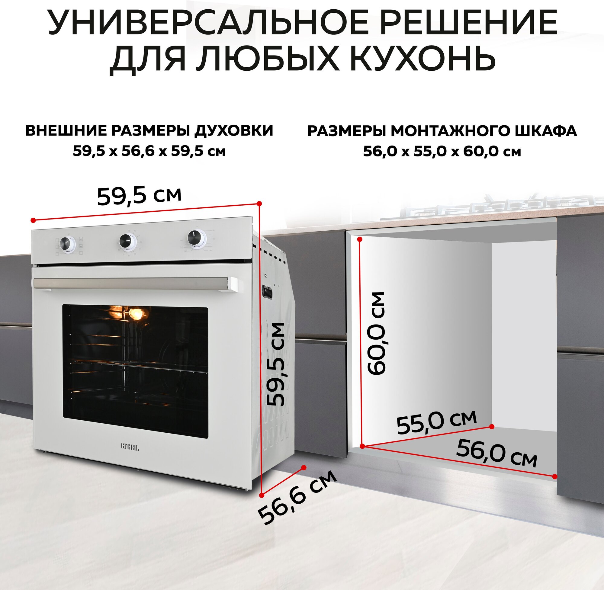 10 цен на GFGRIL Духовой шкаф электрический встраиваемый GF-EO300W, духовка 76 л, 8 программ, конвекция, таймер, цвет - белый