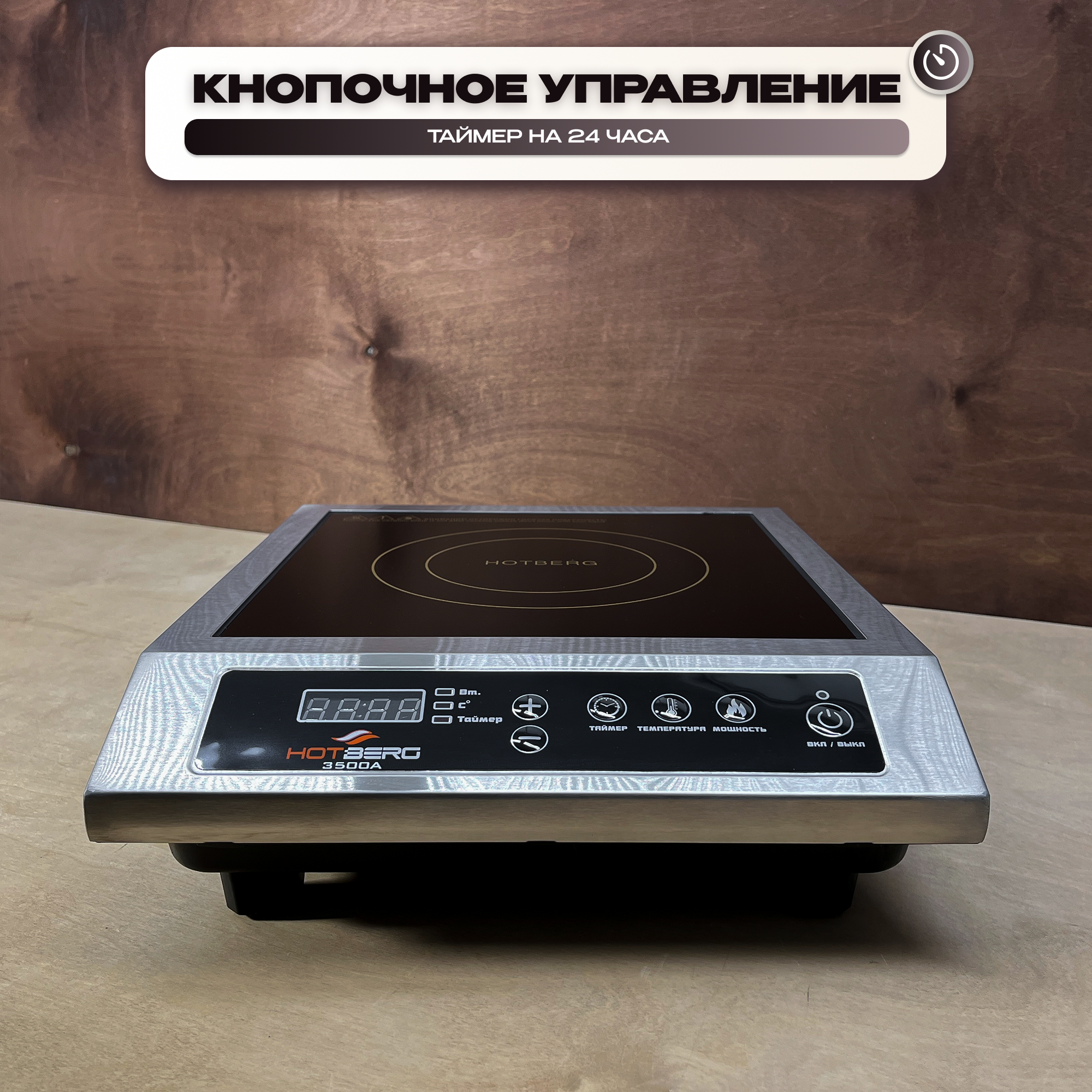 Индукционная плита Hotberg 3500A, 3.5 кВт, шаг 100 Вт, таймер 24 часа, для самогоноварения, для кафе и ресторанов информация: