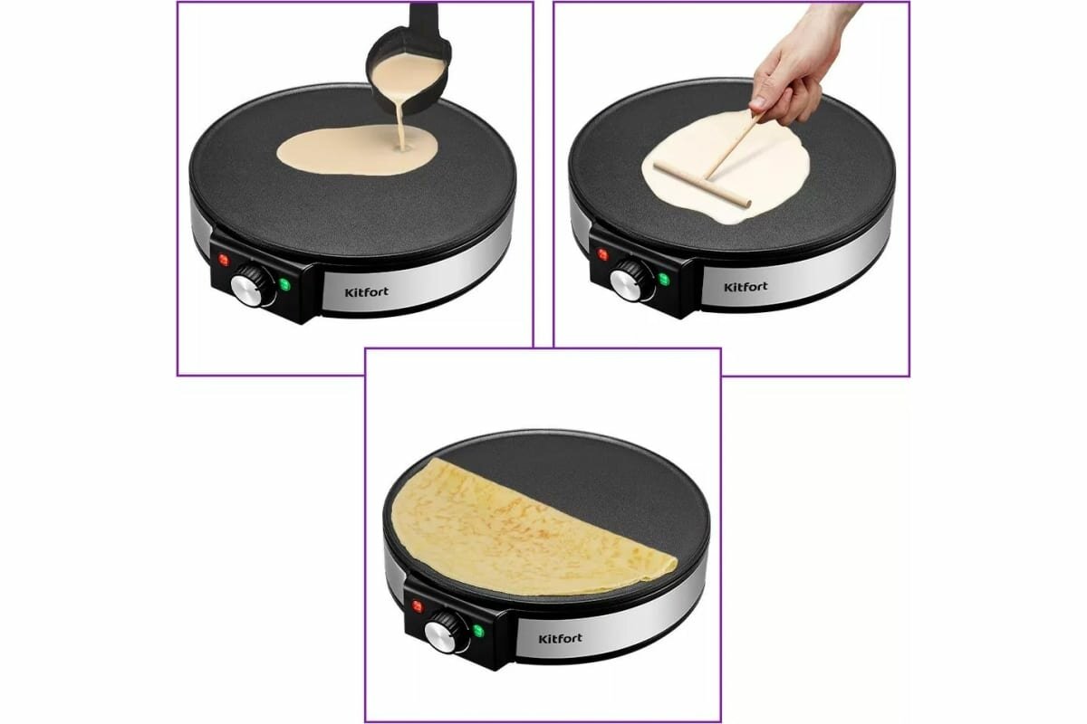 10 цен на Блинница электрическая Kitfort КТ-1678, 1200 Вт, d=30 см, чёрно-серебристая