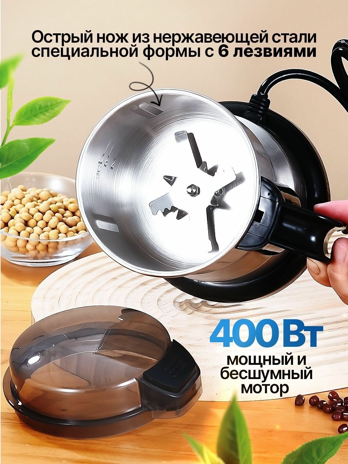 Кофемолка электрическая JAMAKY. Мощность 400 Вт. Объем 400 г. Полностью из нерж. стали информация: