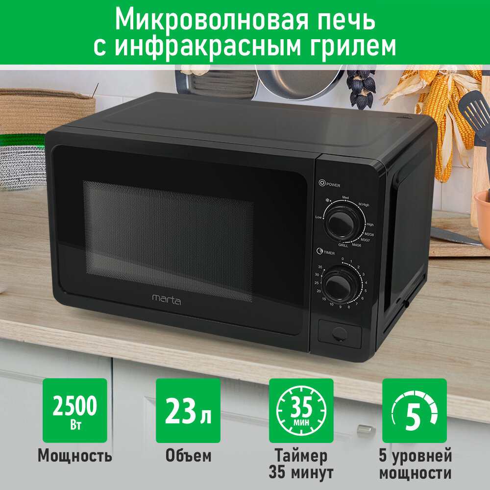 Микроволновка микроволновая печь СВЧ MARTA MT-MW4702B гриль черный 23 л