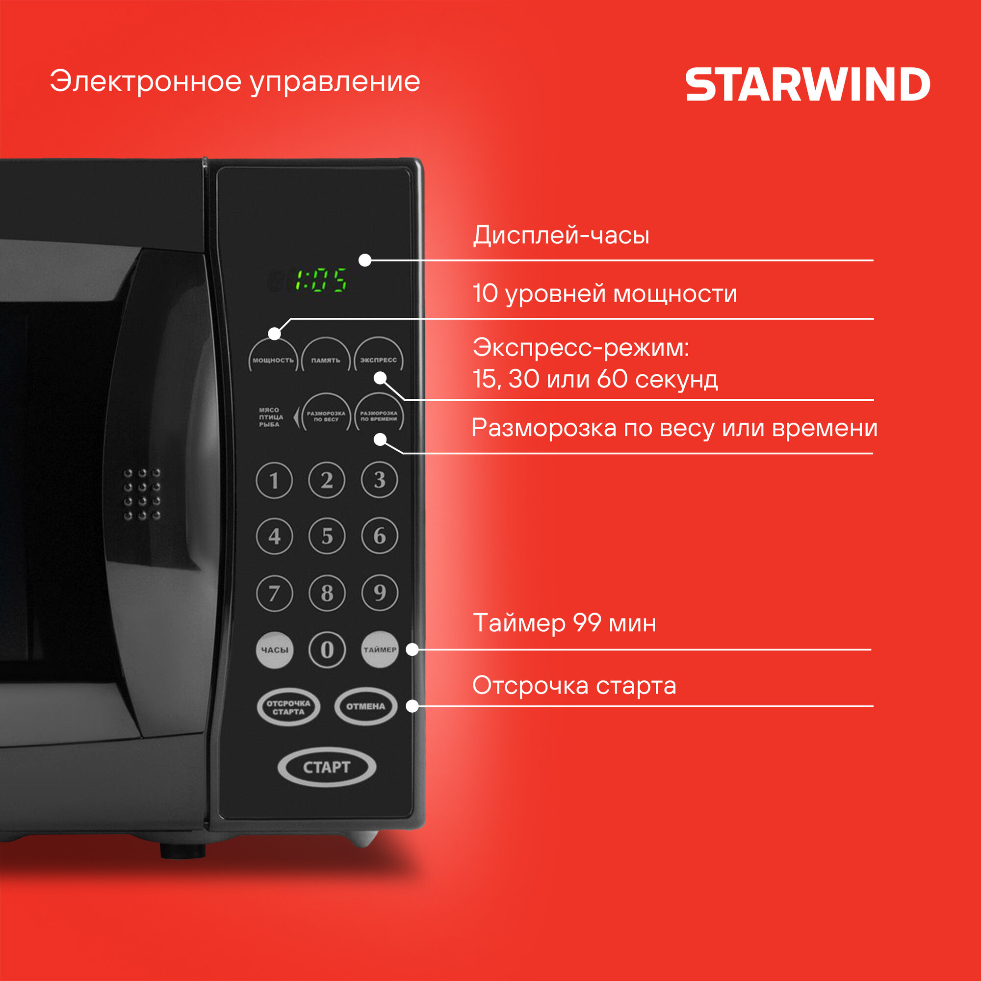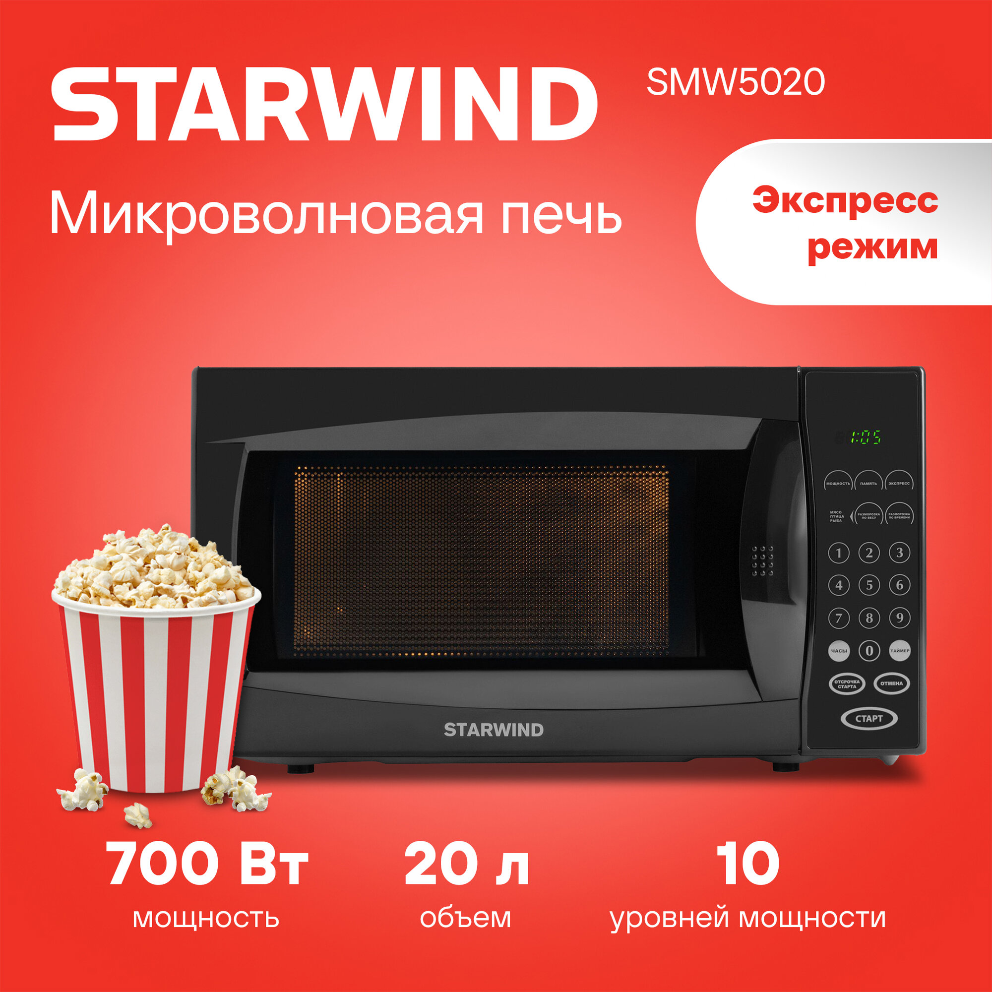 10 цен на Микроволновая печь StarWind SMW5020, 700Вт, 20л, черный