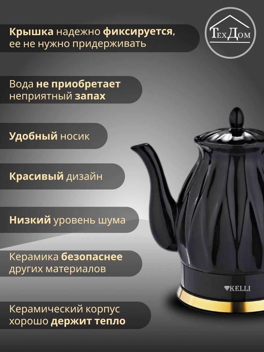 Чайник керамический 2л KELLI 1341 Черный информация: