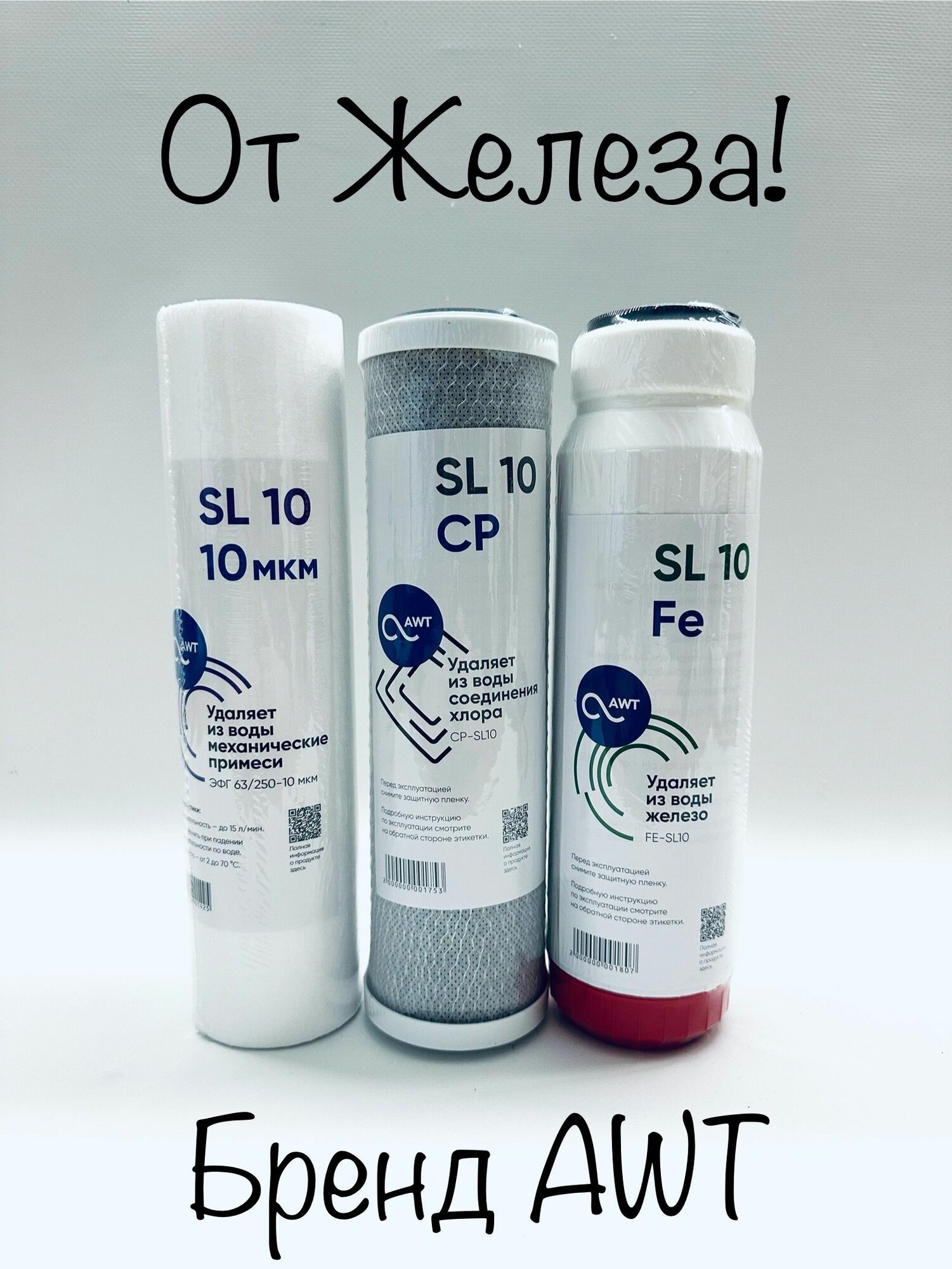 10 цен на Комплект фильтров для воды от железа 3 шт. От Бренда AWT
