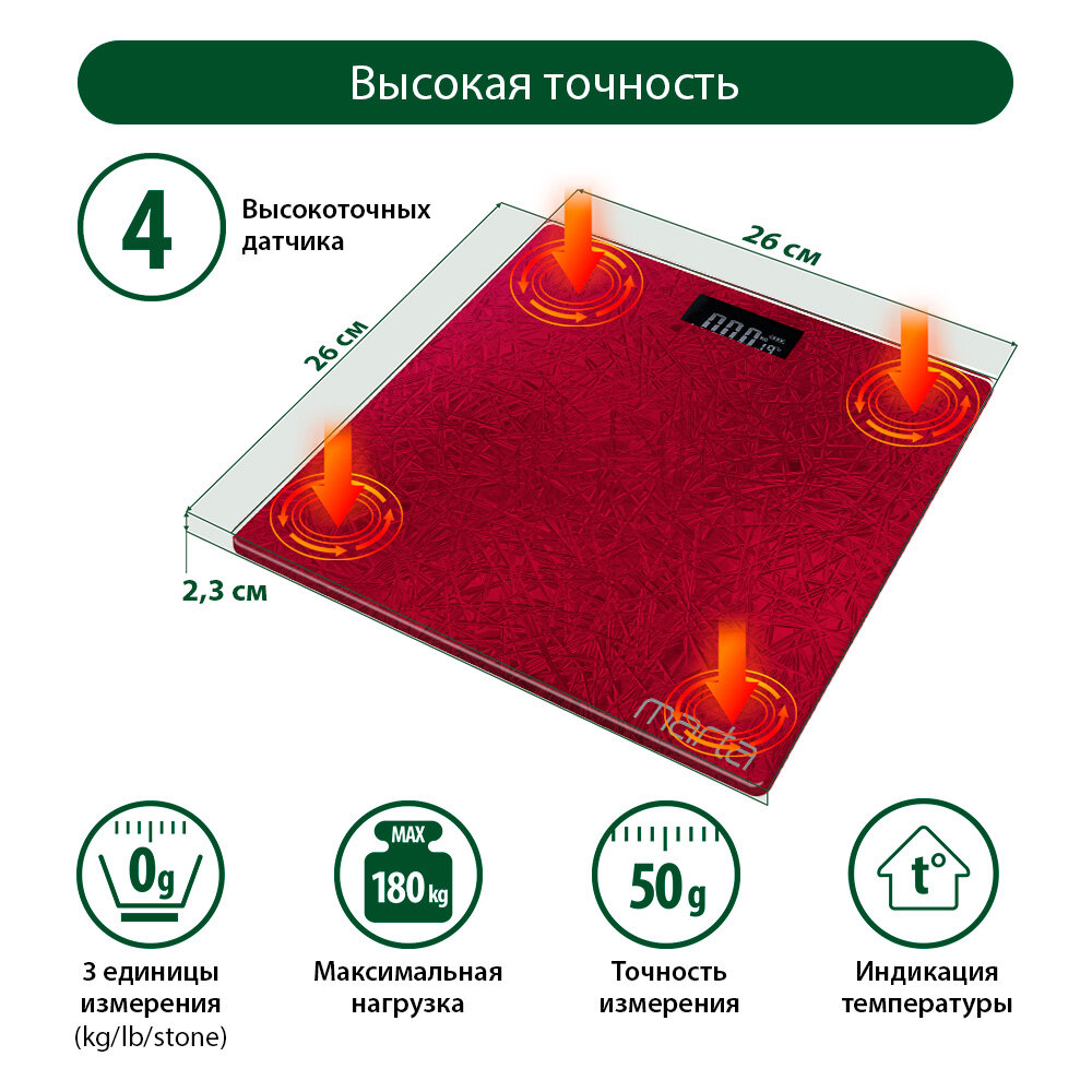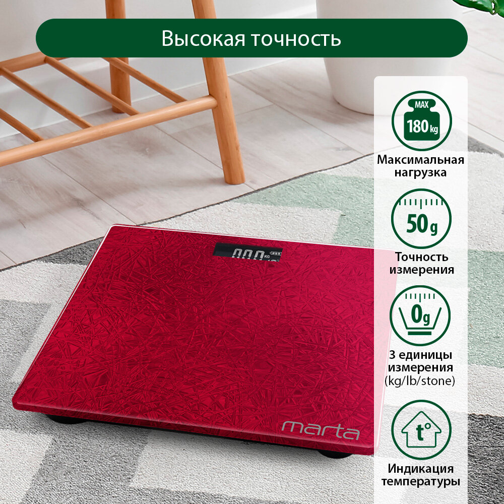MARTA MT-1679 красный рубин {new} весы напольные сенсор, встроенный термометр информация: