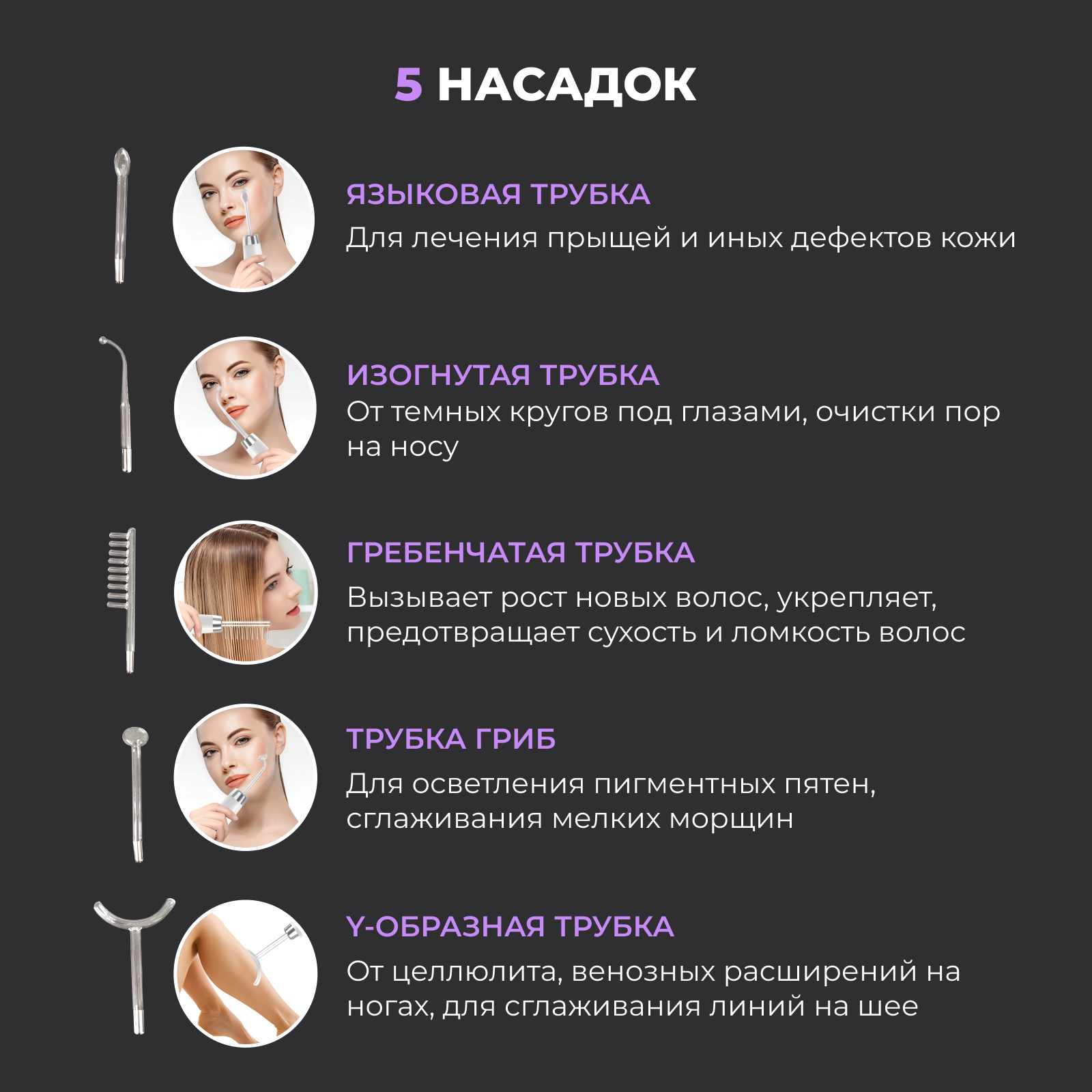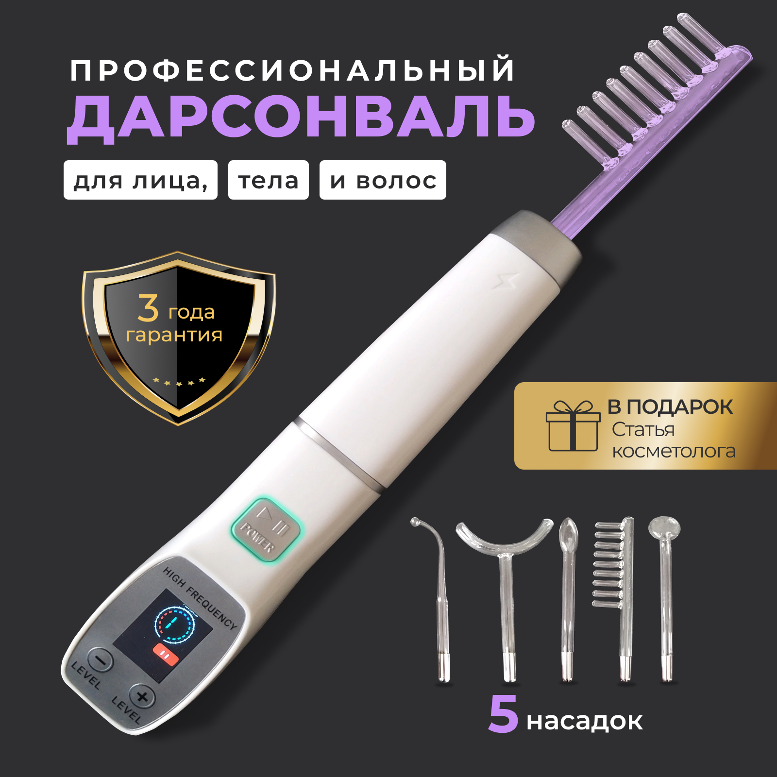 Дарсонваль с ЖК-дисплеем для лица, тела и волос, 9 уровней мощности и 5 насадок информация: