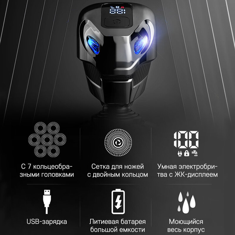 Электробритва, электробритва мужская, электробритва для лица, аккумуляторная, 3 бреющих элемента, дисплей