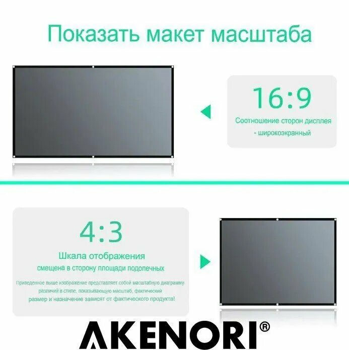 Экран для проектора Akenori 130", серый, светоотражающий информация: