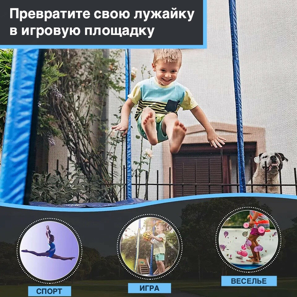 | Состав набора | батут, стойки для защитной сети, защитная сеть |