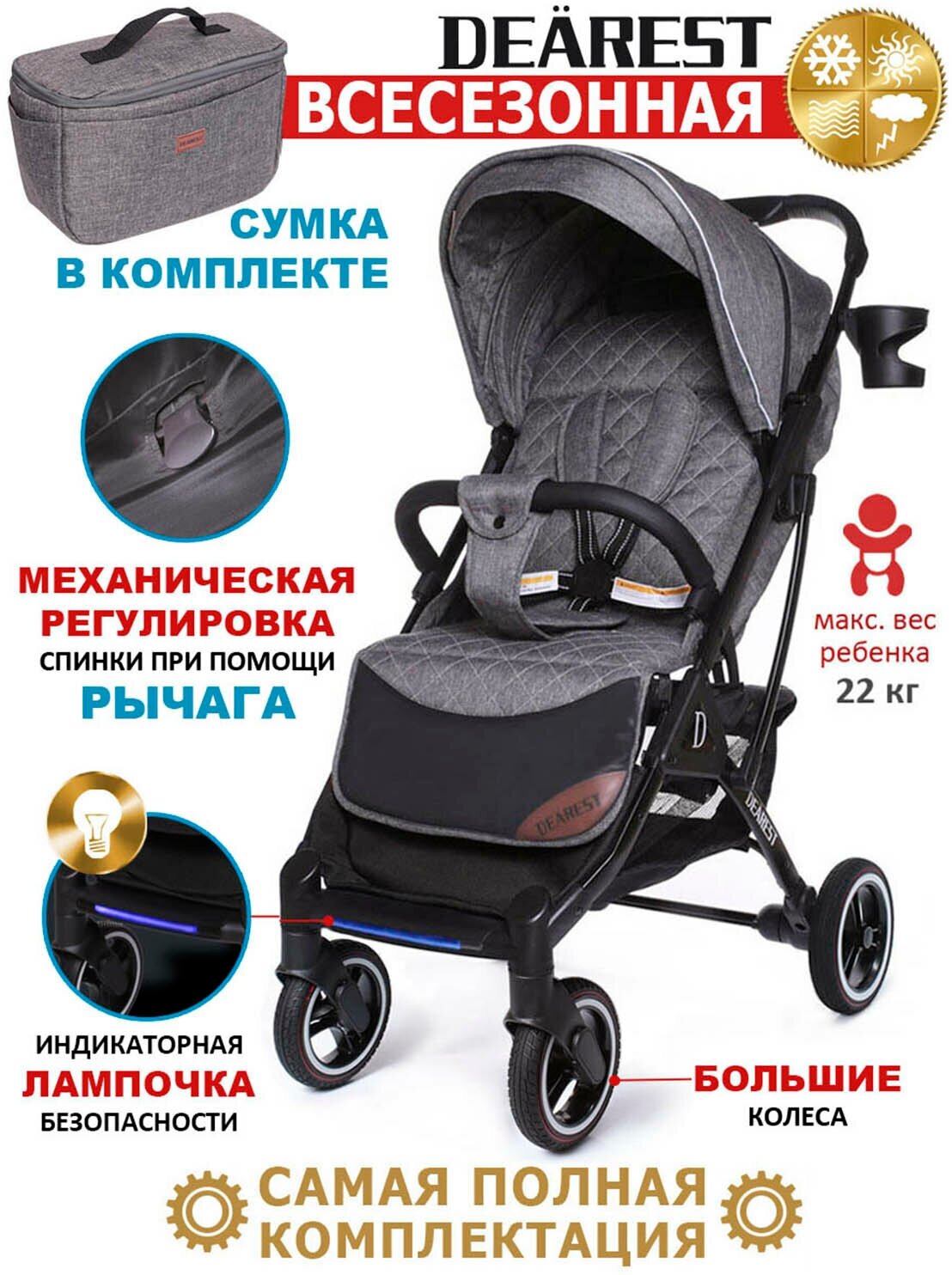 Отзывы на Коляска прогулочная Dearest 819 PLUS модель 2023, с механической спинкой, большим капюшоном, полная комплектация, (серый)