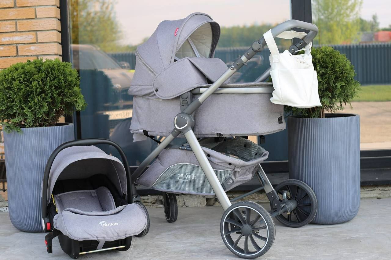 Отзывы на Коляска детская Teknum 3 в 1 с реверсивным блоком и сумкой X1-D+C, серый