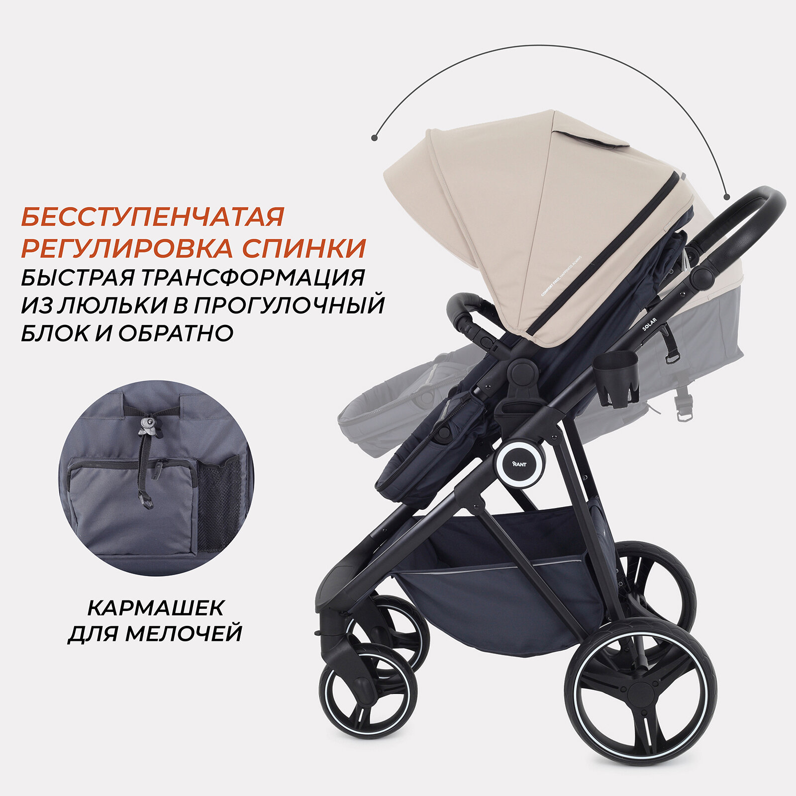 Отзывы на Коляска-трансформер детская всесезонная RANT SOLAR 2 в 1 RA158 Beige