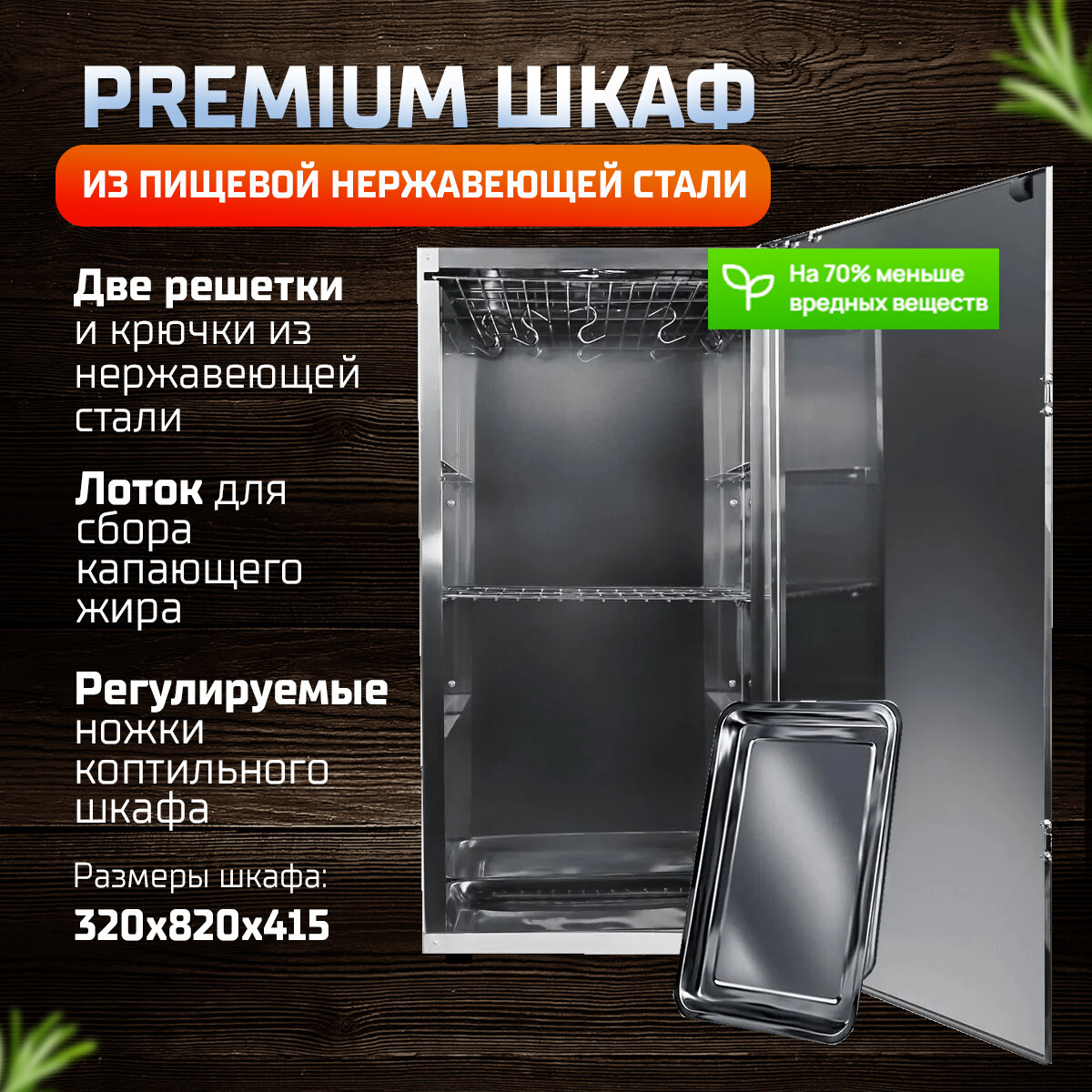 Шкаф для холодного копчения серии Смарт (90л) дерево без поддона для сбора жира