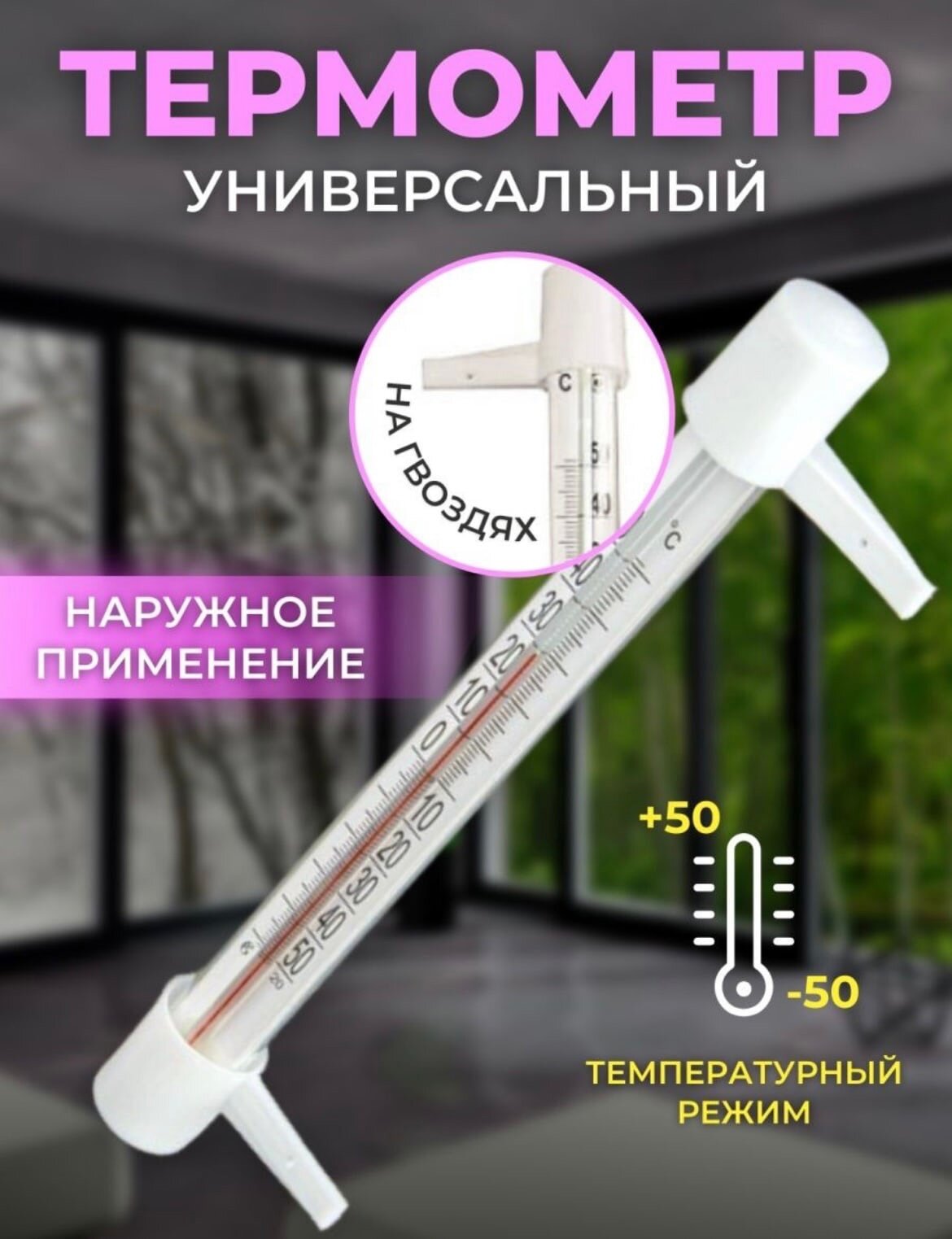 Термометр уличный оконный на гвоздях. Без ртути. информация: