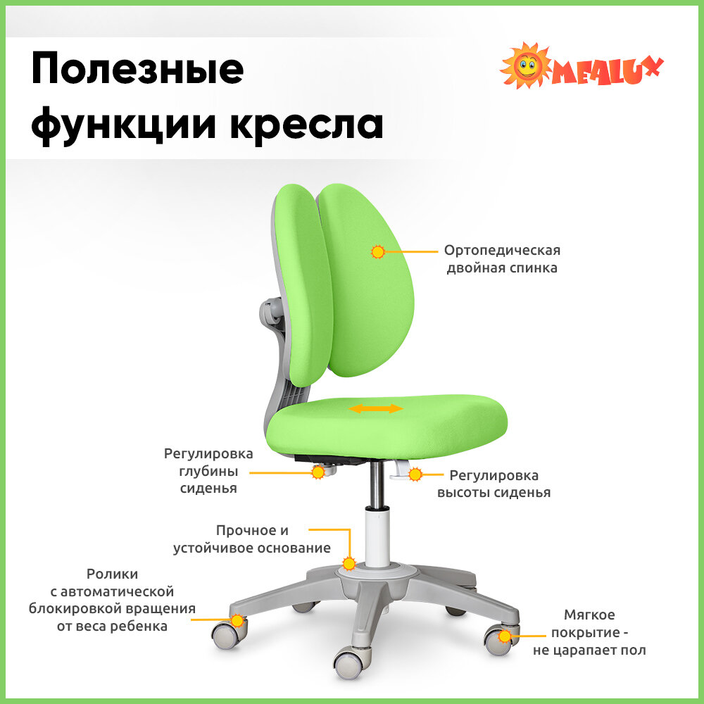 Растущее детское кресло для школьника ErgoKids Sprint Duo Lite Green (арт.Y-412 Lite KZ) для обычных и растущих парт с чехлом информация: