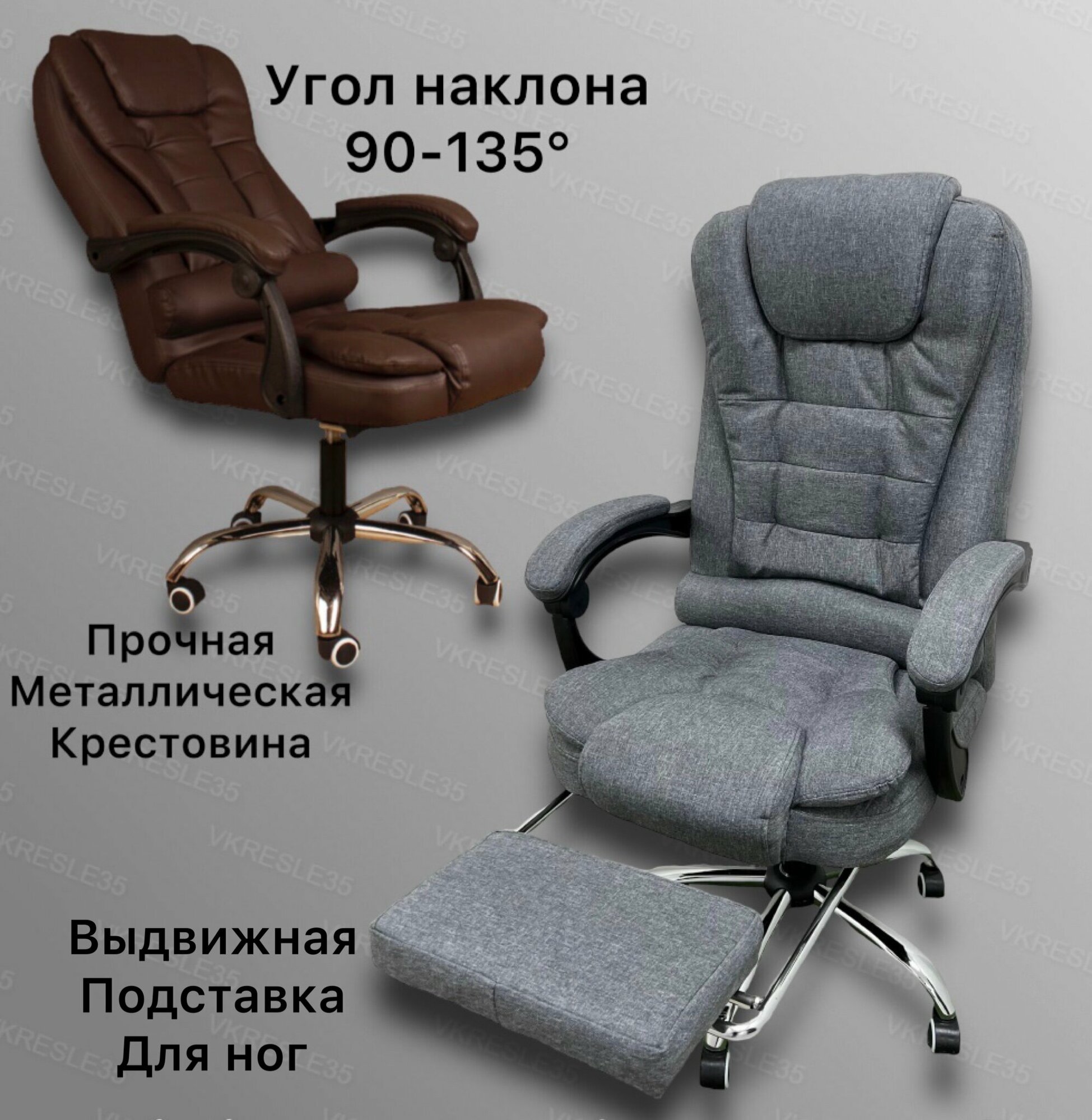 10 цен на Компьютерное кресло - Кресло Руководителя, функция Вибромассажа ,Тканевое, с подставкой для ног, цвет светло-серый