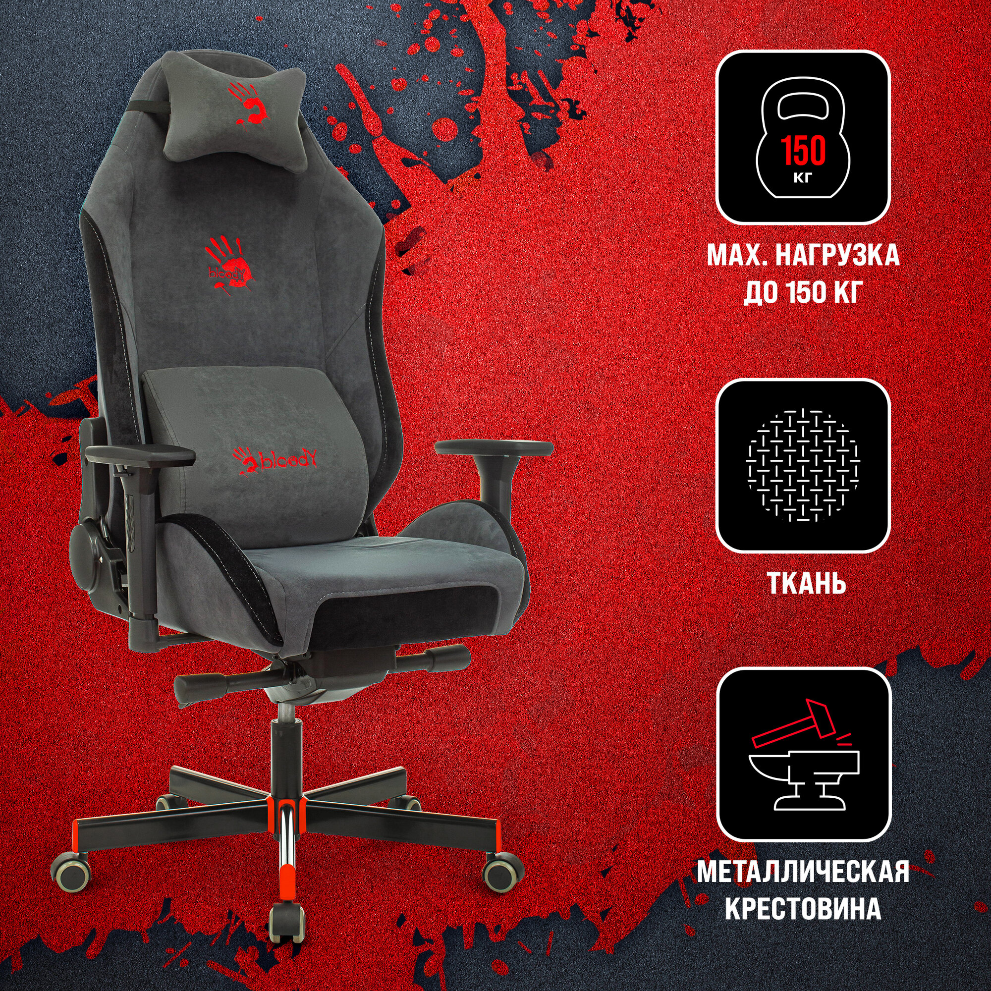 Кресло игровое A4Tech Bloody GC-420, цвет спинки: серый, ткань информация: