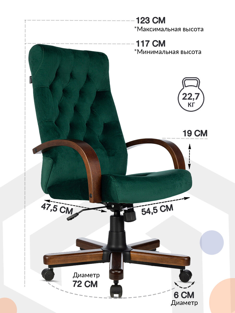 Отзывы на Кресло руководителя T-9928WALNUT Fabric зеленый Italia Green крестов. металл/дерево / Компьютерное кресло для директора, начальника, менеджера