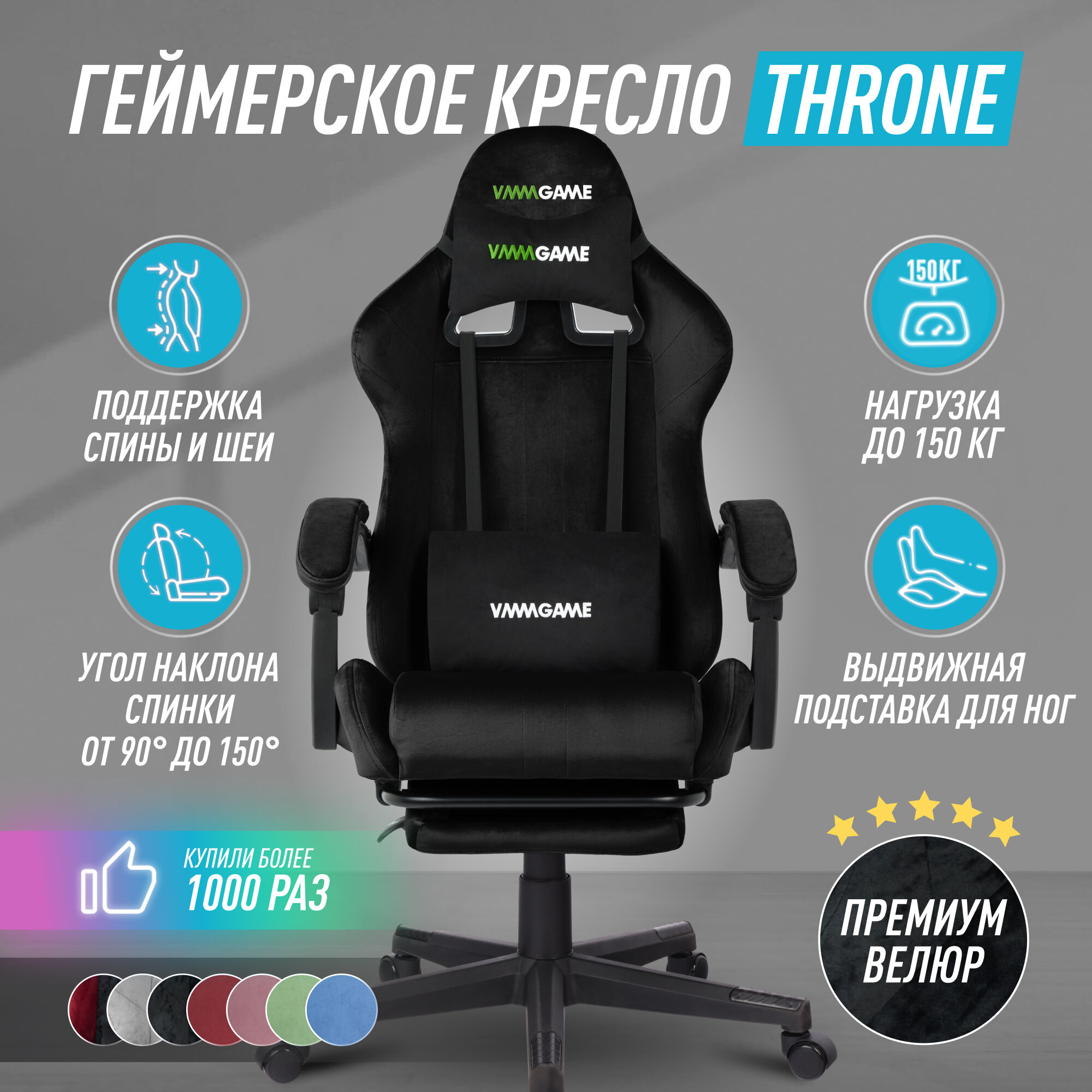Кресло компьютерное / Игровое кресло / Компьютерное кресло / Компьютерный стул THRONE VELOUR чёрный информация: