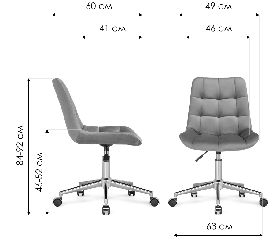 | Конструктивные особенности | без подлокотников / с колесами (роликами) |