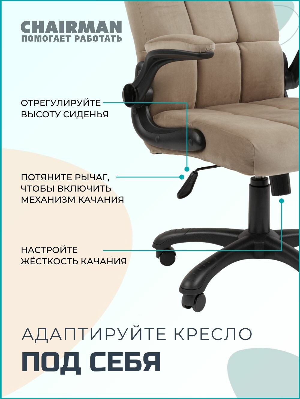 Компьютерное кресло для дома и офиса CHAIRMAN HOME 444, ткань велюр, бежевый информация: