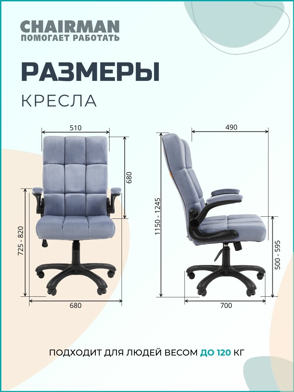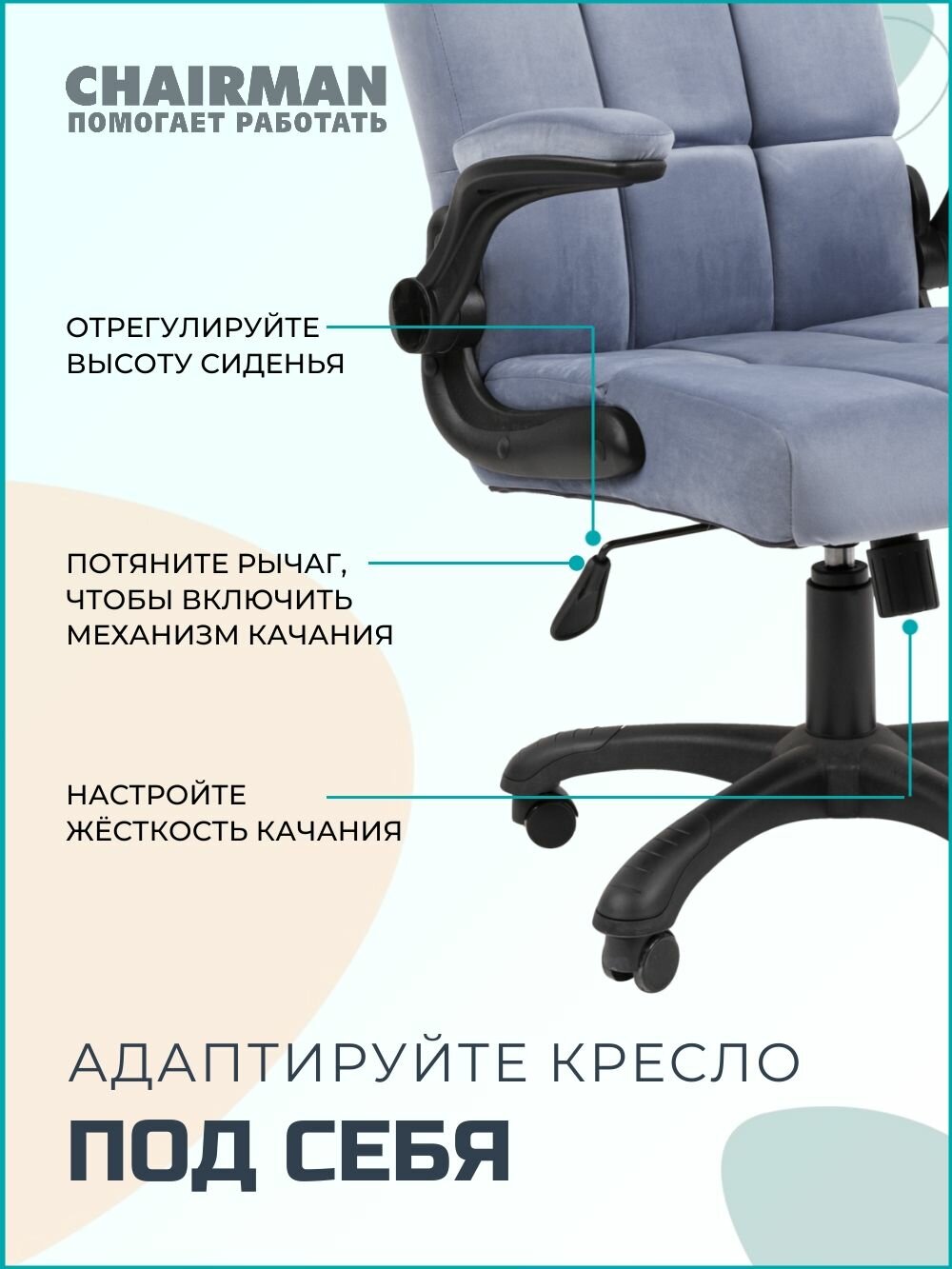 Компьютерное кресло для дома и офиса CHAIRMAN HOME 444, ткань велюр, голубой информация: