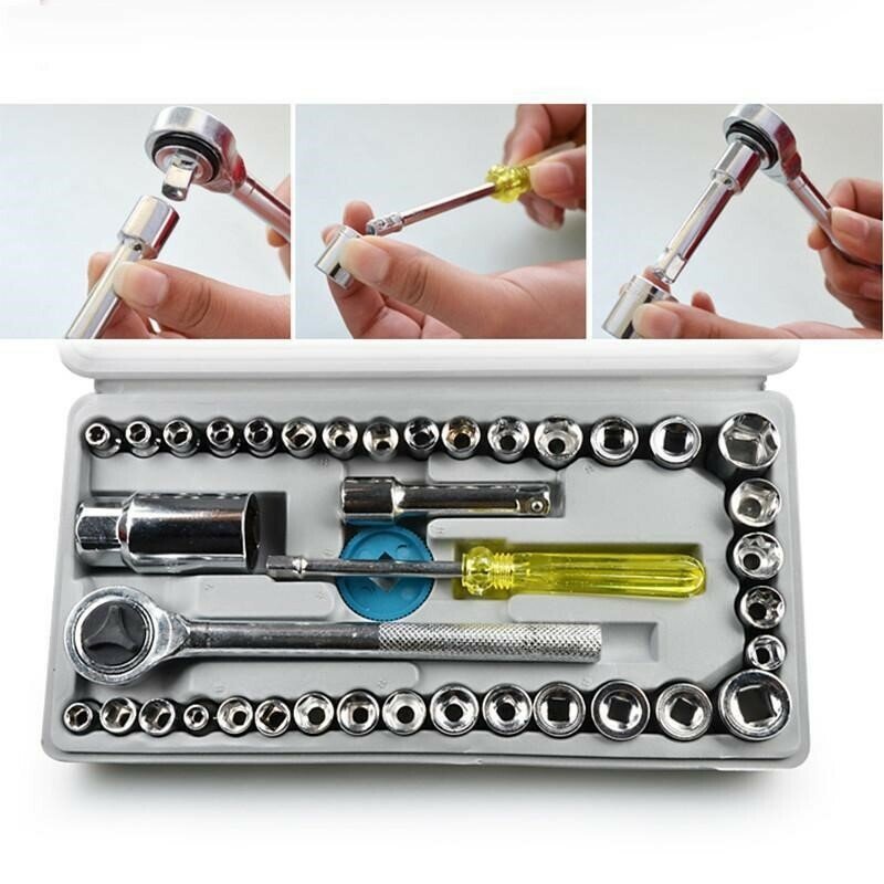 10 цен на Набор инструментов 40 предметов в кейсе / Набор инструментов для автомобиля / Набор головок / Ключ трещотка