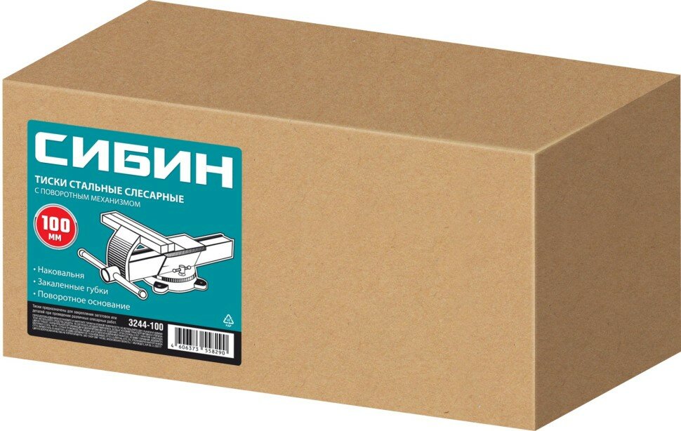 СИБИН 100 мм, Стальные слесарные тиски (3244-100) информация: