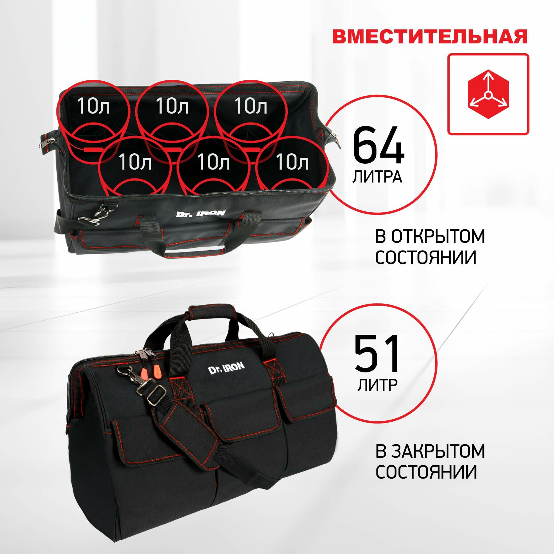 10 цен на Сумка для инструмента с ремнем 650х280х450 мм 11 карманов Dr.IRON