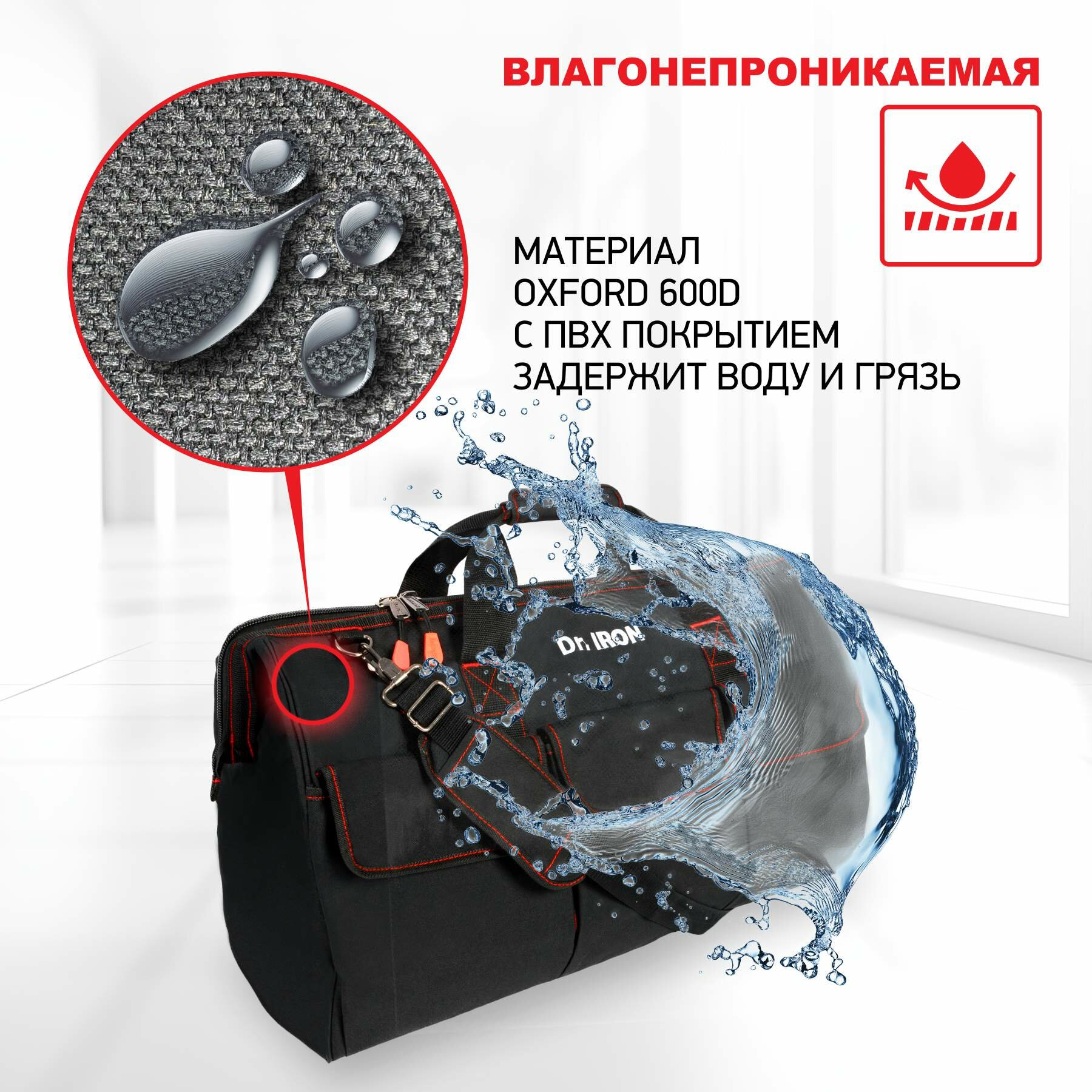 Сумка для инструмента с ремнем 650х280х450 мм 11 карманов Dr.IRON информация: