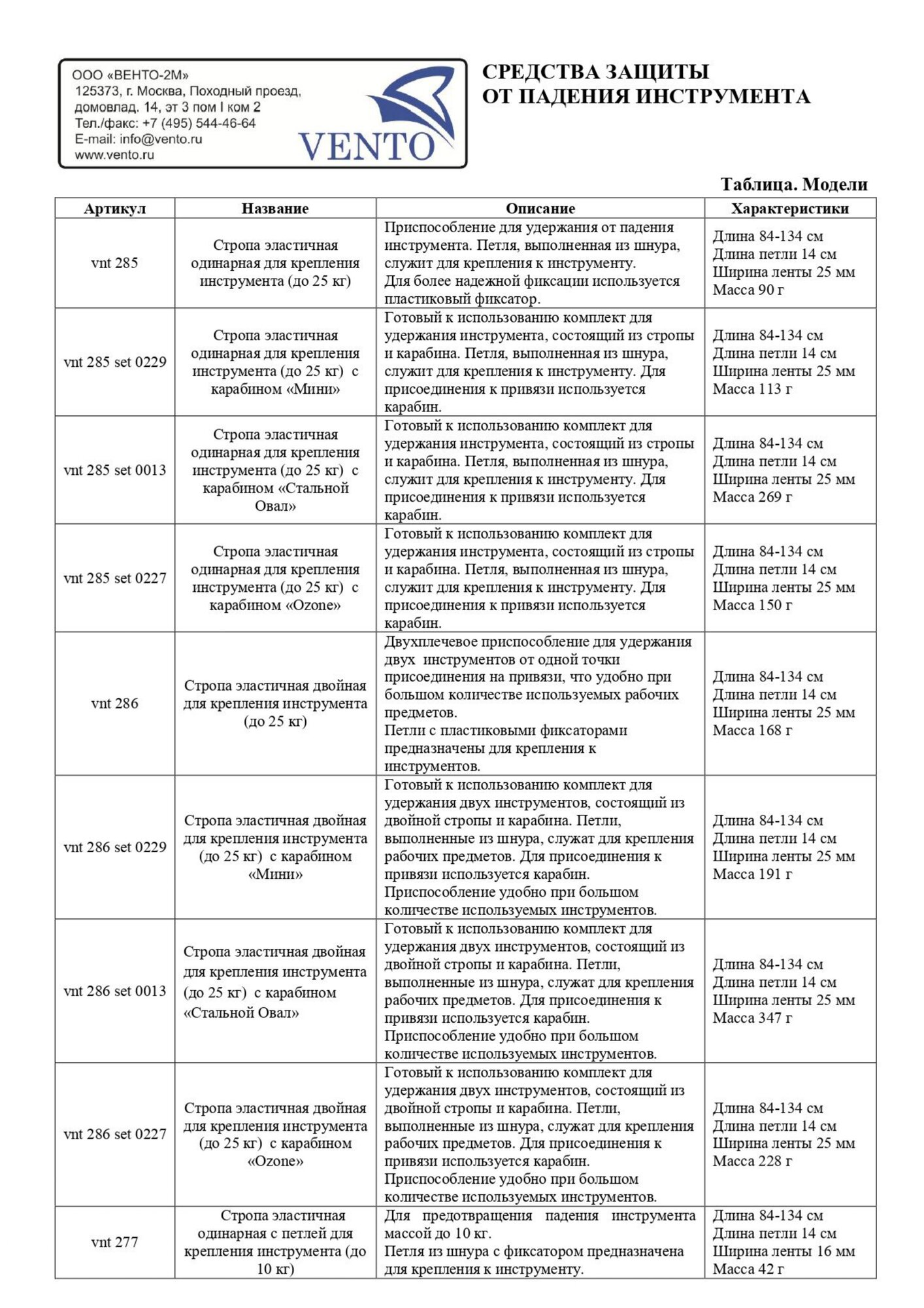 Комплект точек крепления инструмента на привязь | Vento