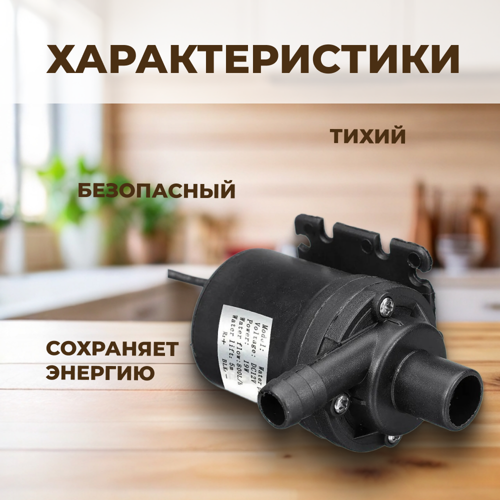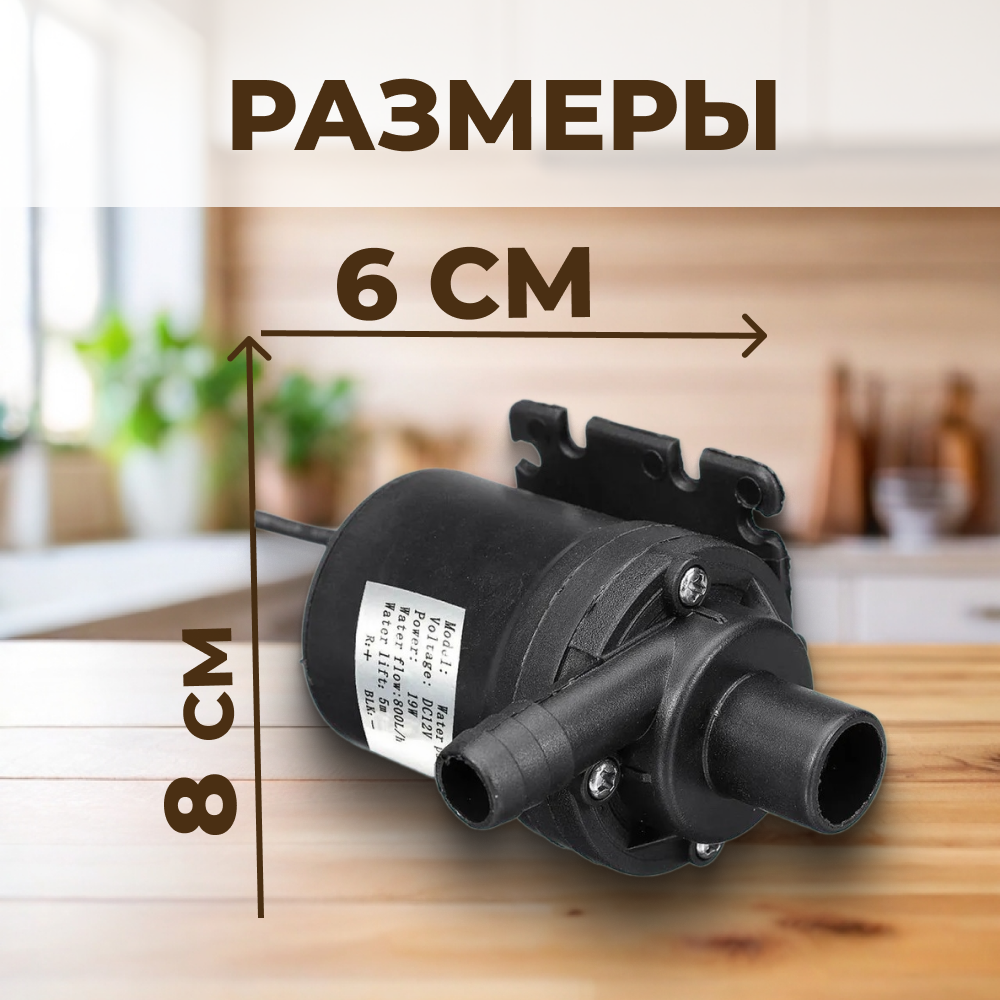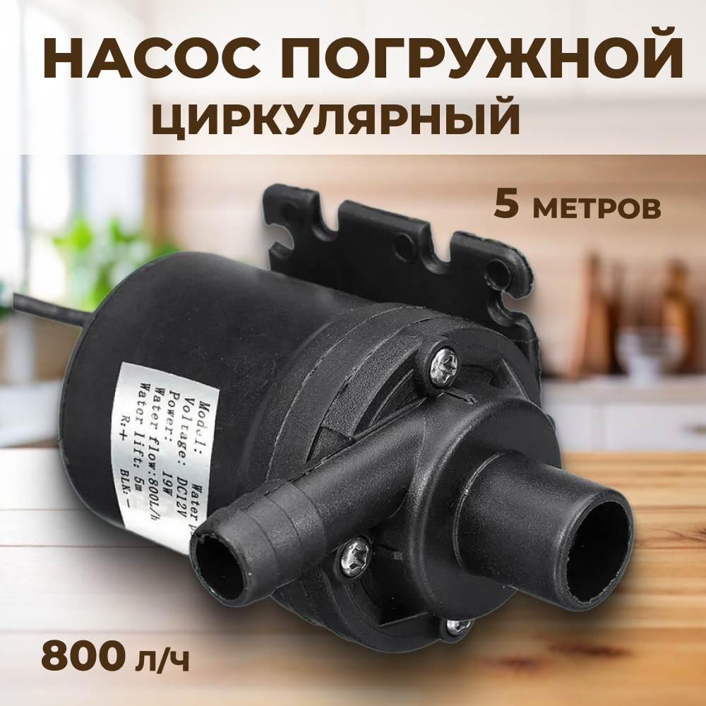 Безщеточный водяной насос, 12 Вольт (DC 12V), 19 Ватт, 800л/ч, высота подъема 5 м, подключение 1/2" мини с кабелем штекером на 5.5 х 2.1