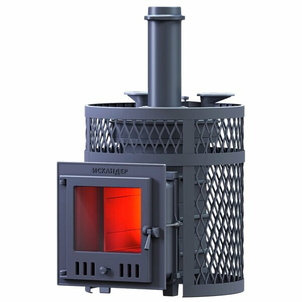 Чугунная дровяная печь для бани Искандер 25 в сетке стекло