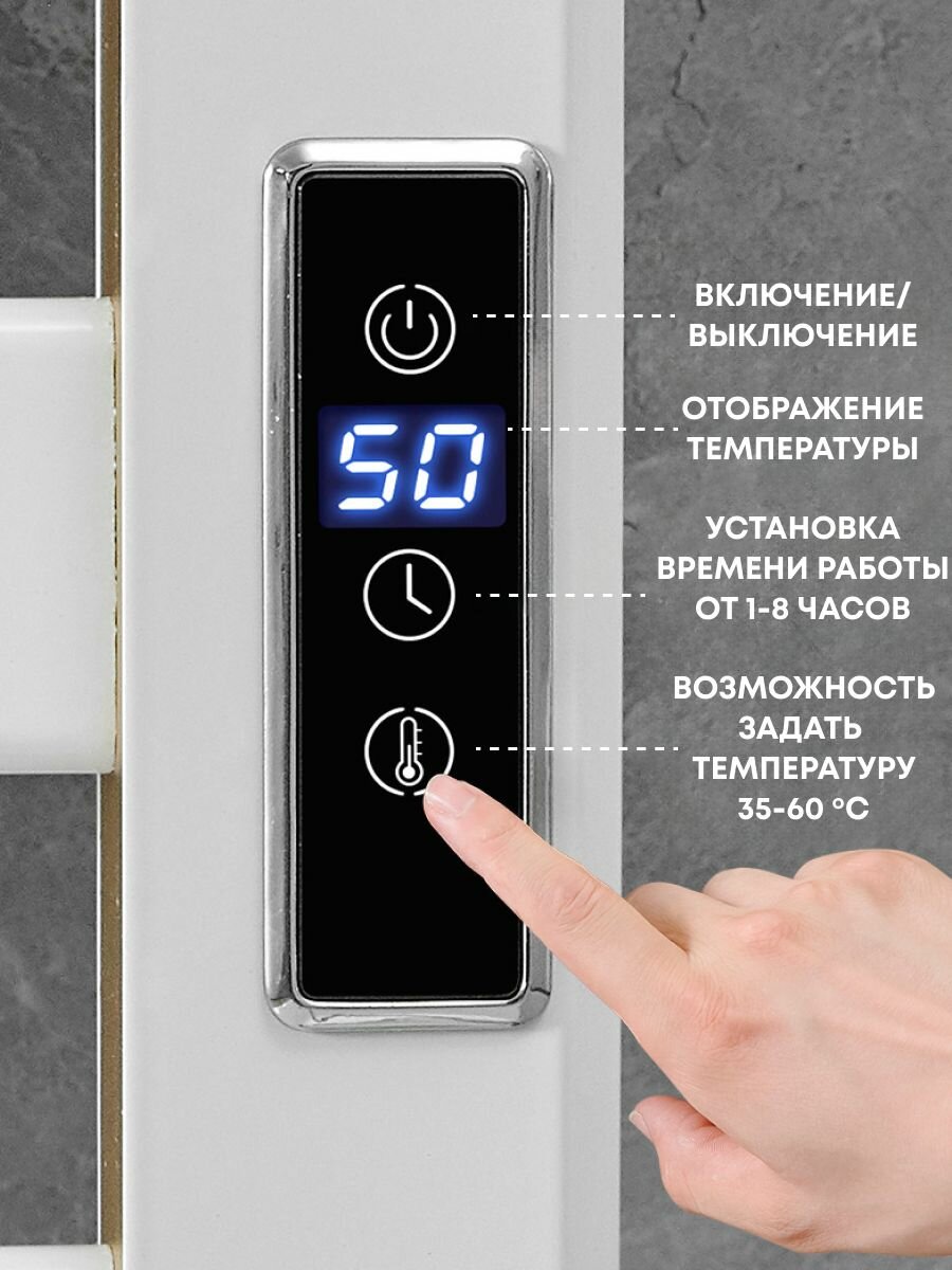 Полотенцесушитель электрический WORK-Оливер 80x50 белый с терморегулятором, 5 перекладин + полка