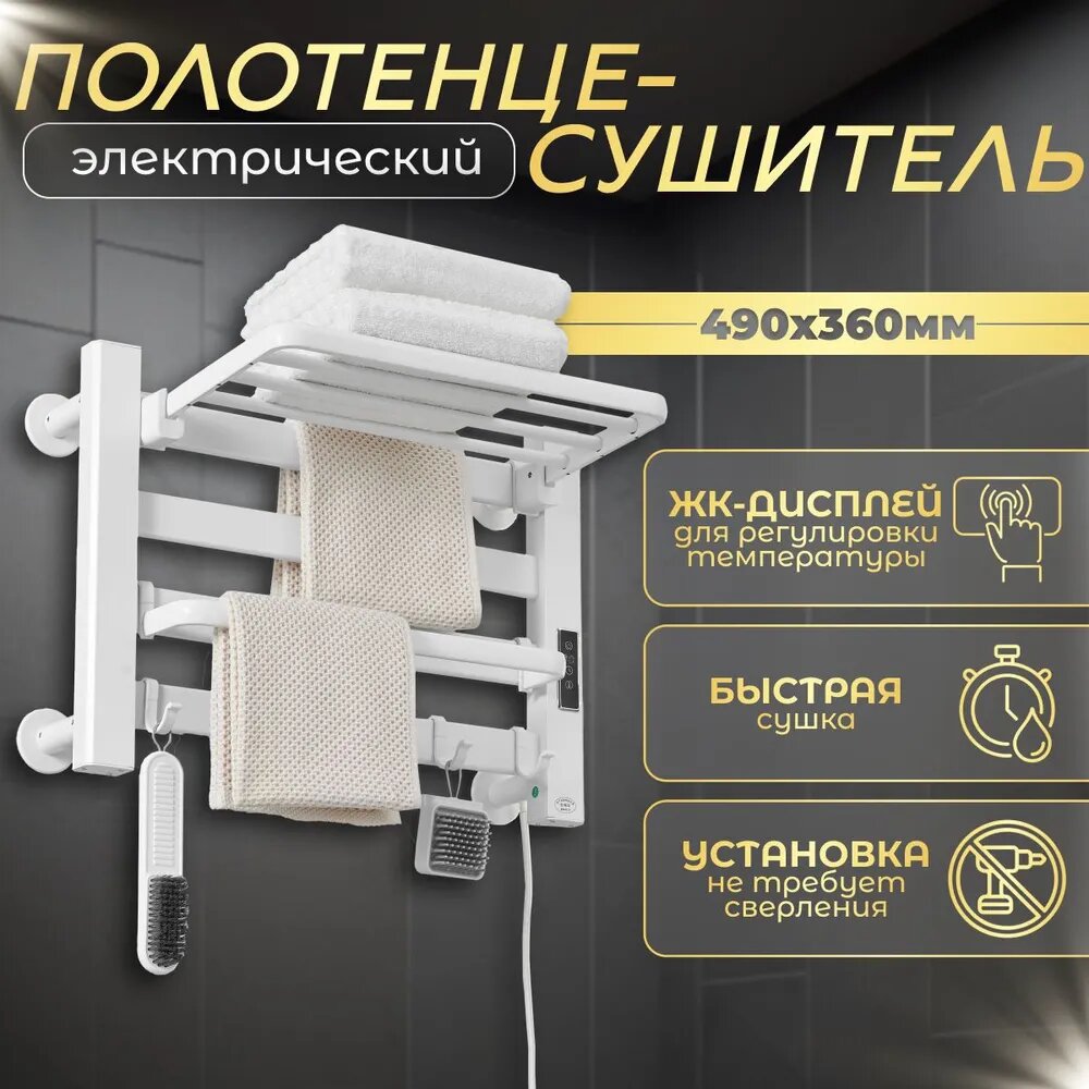 Полотенцесушитель электрический WORK-Оливер 80x50 белый с терморегулятором, 5 перекладин + полка