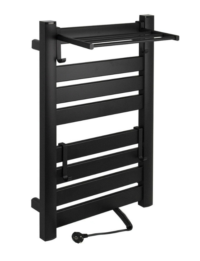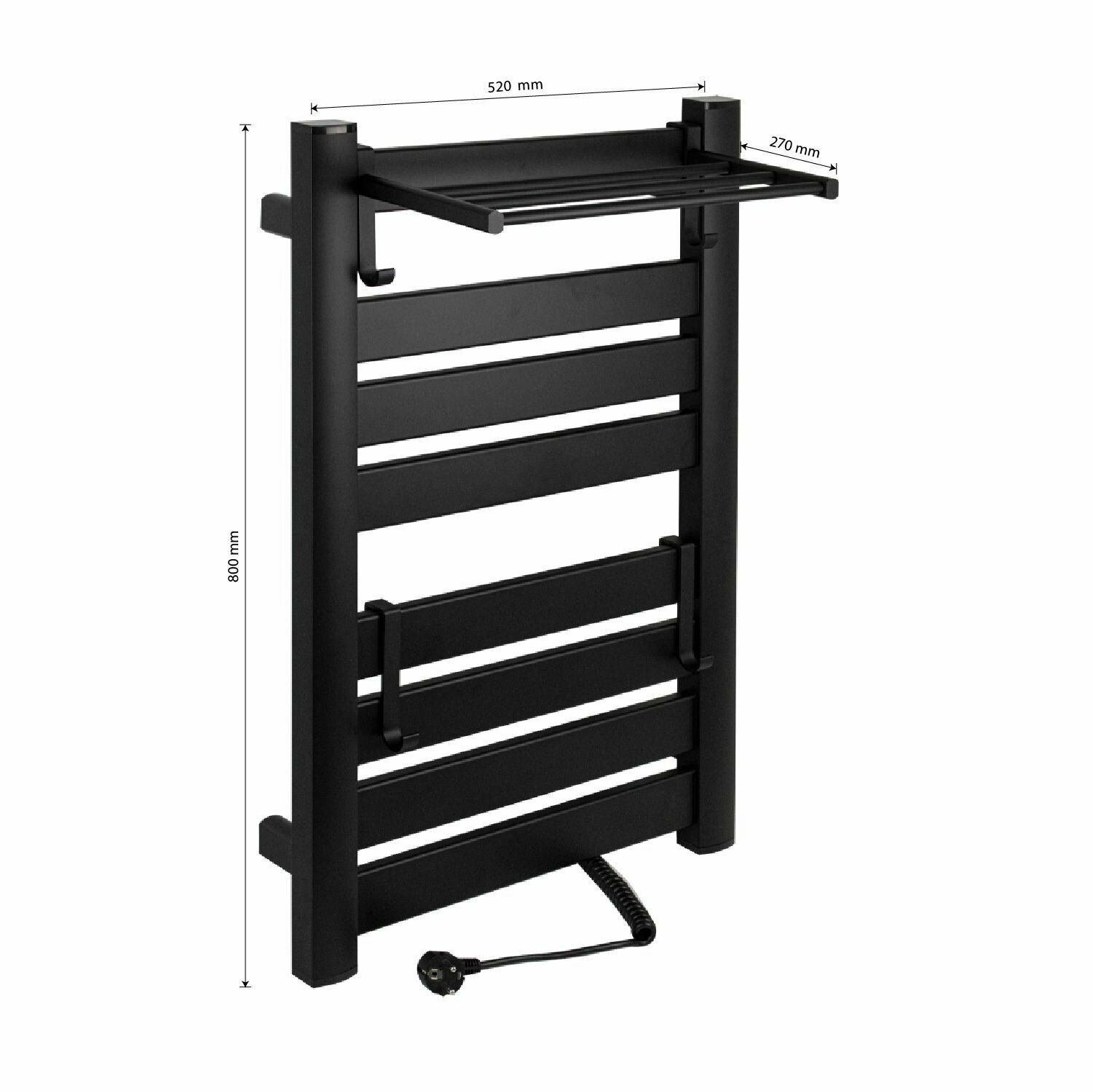 BRIMIX - Полотенцесушитель электрический, чёрный, лесенка с полкой, 800х520х270 мм, на 8 плоских перекладин, 220-230 В, 50-60 Гц, 108W, из алюминия