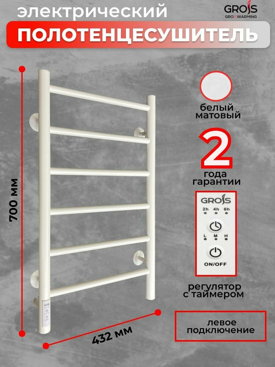 Полотенцесушитель электрический Grois Laura GR-131 400мм 700мм П6 белый матовый подключение слева форма Лесенка информация: