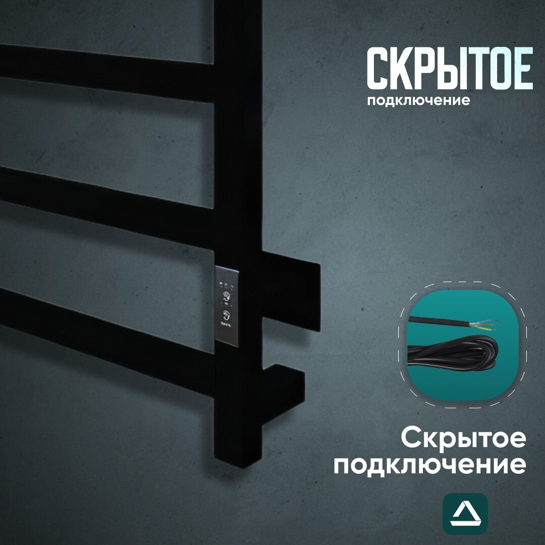 Полотенцесушитель электрический TermoPrime 500мм 800мм черный матовый RAL 9005, скрытое подключение: слева/справа/кабель с вилкой. информация: