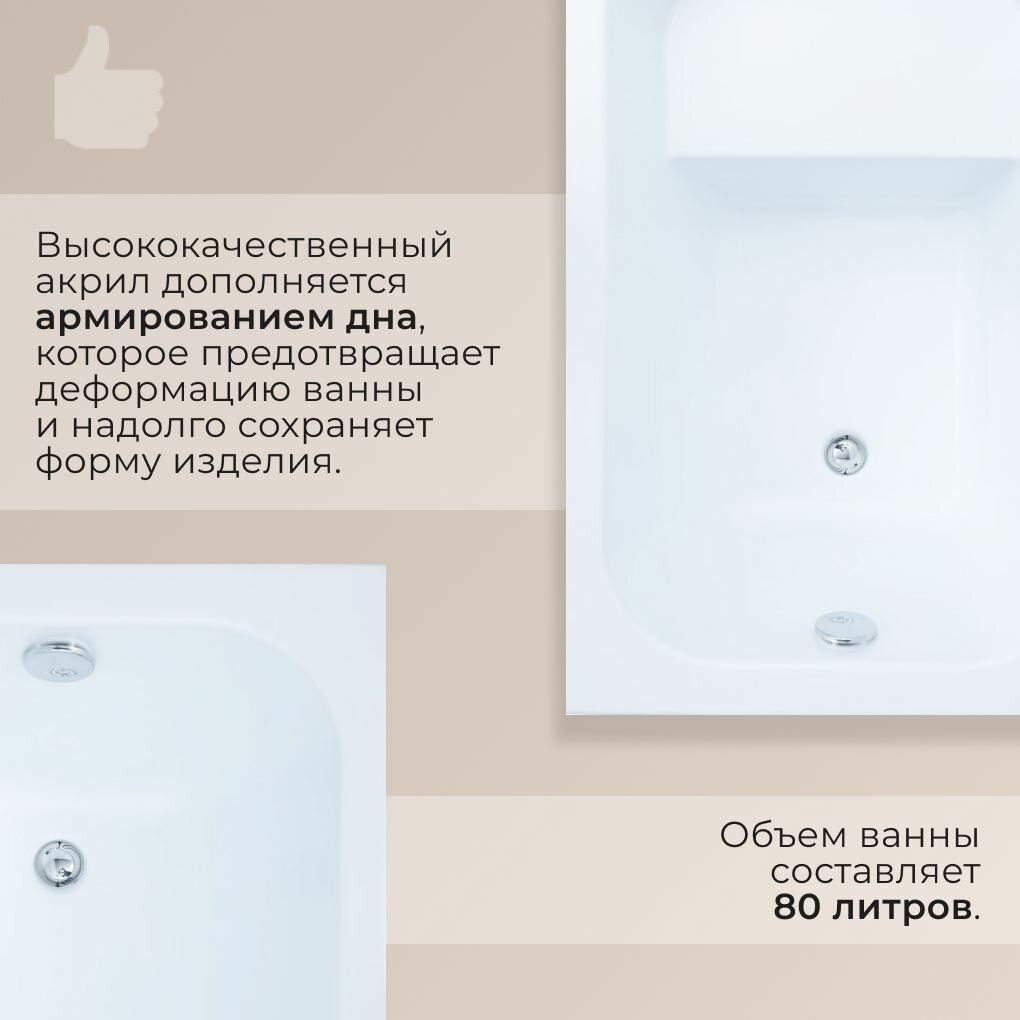 Акриловая ванна ARAGUT Кама 160х70 прямоугольная, в комплекте с каркасом, белая