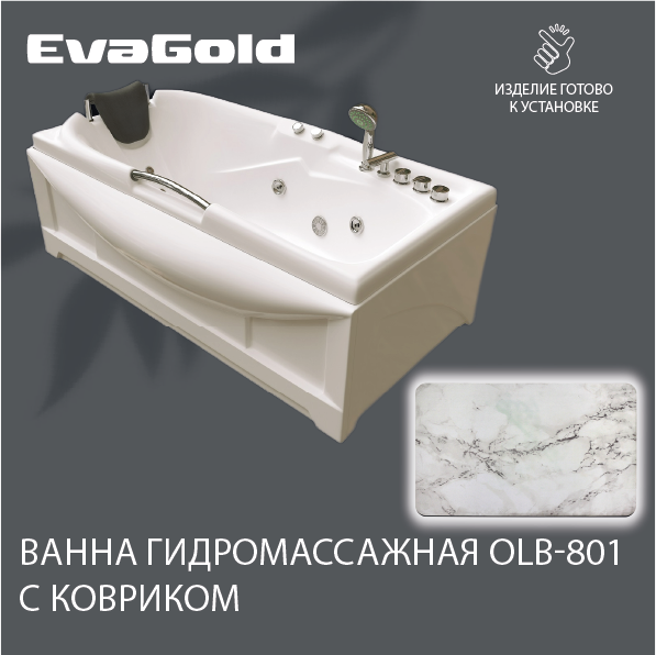 Ванна гидромассажная EvaGold OLB-801 170х85х63 с ковриком для ванной, белый мрамор информация: